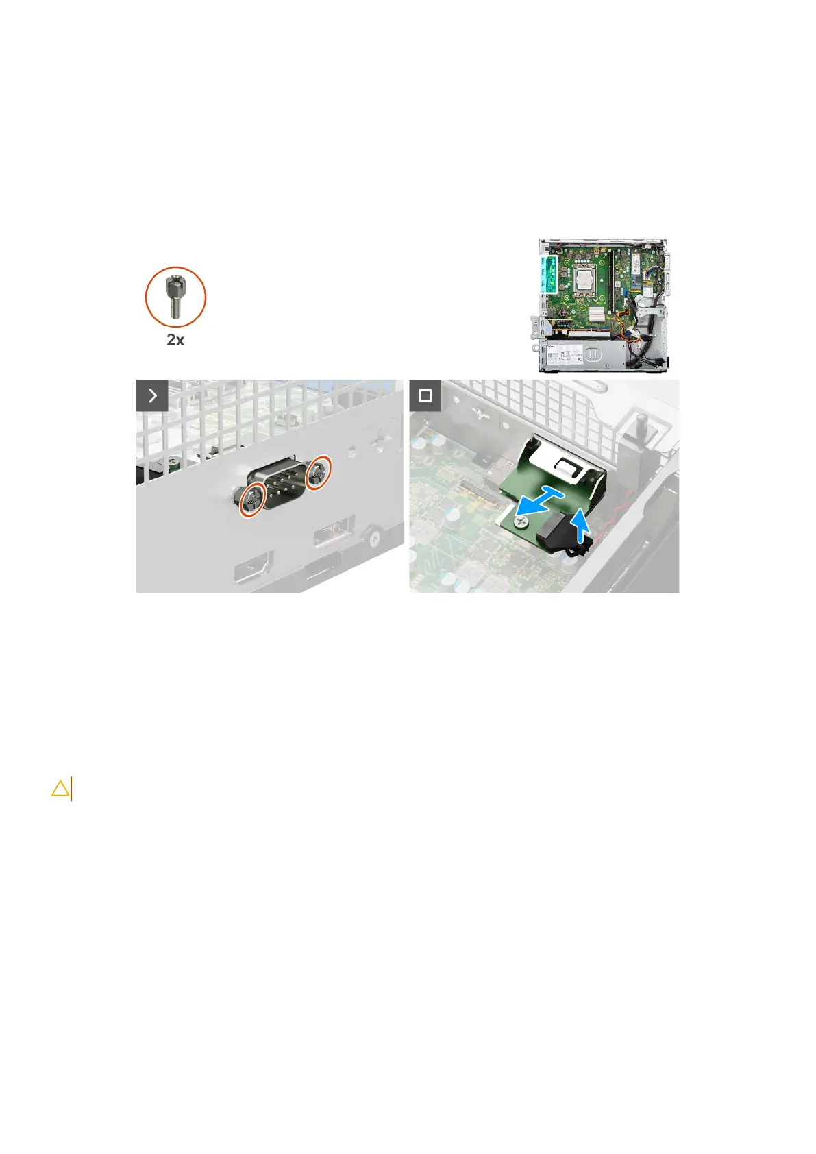 The following images indicate the location of the serial module and provide a visual representation of the removal procedure.