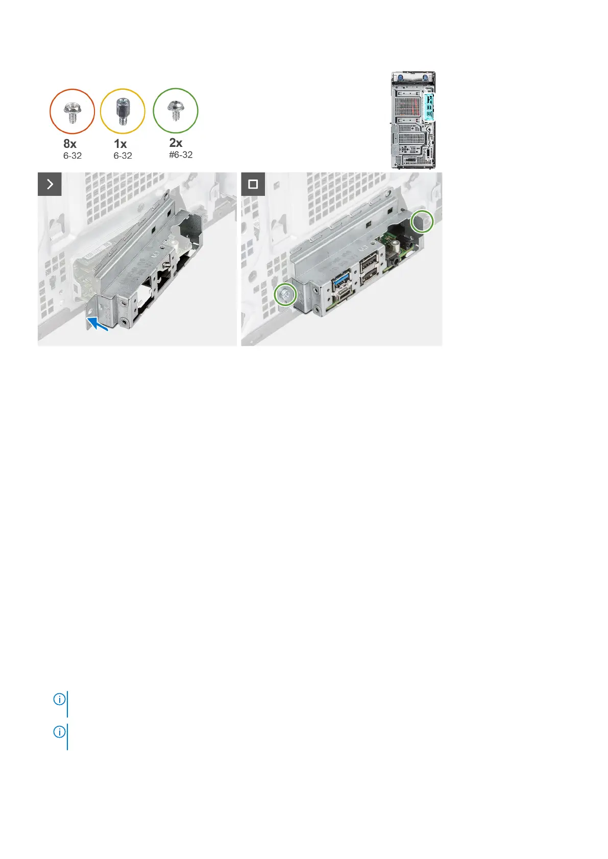 7. Replace the two (#6-32) screws that secure the front I/O-bracket to the chassis.
