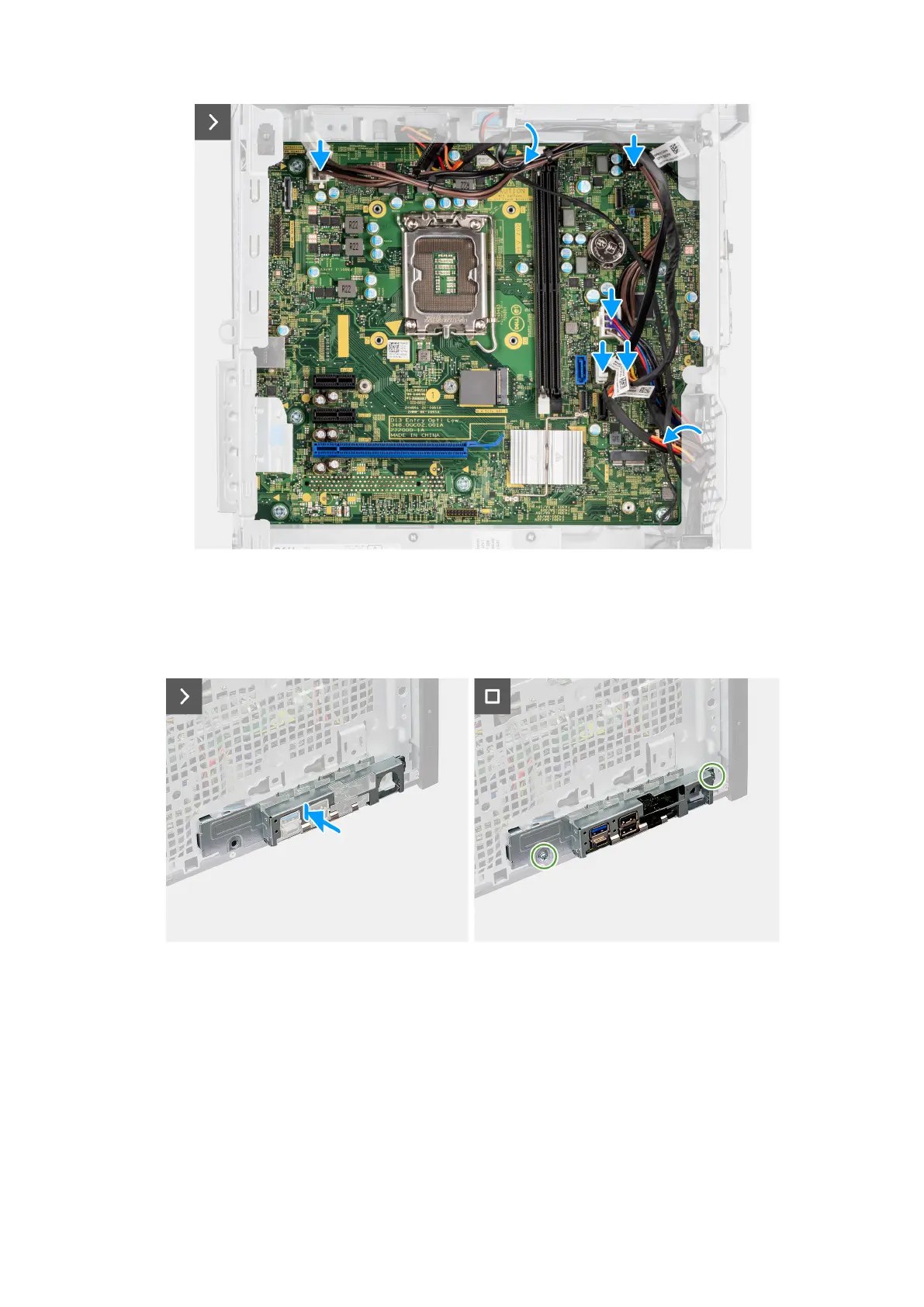 6. Align the tabs on the front I/O-bracket with the slots on the chassis.