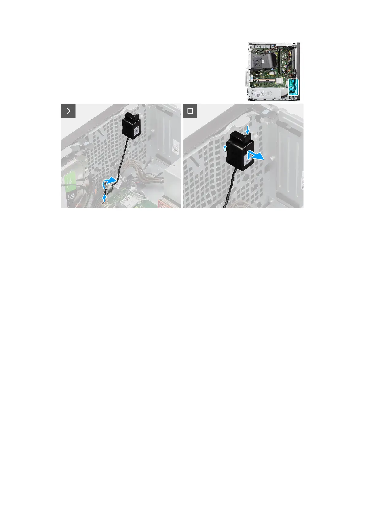 2. Disconnect the speaker cable from the connector (INSKR1) on the system board.