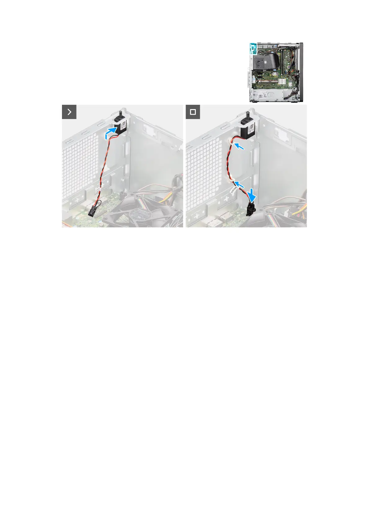 2. Route the intrusion-switch cable through the retention clips on the chassis.