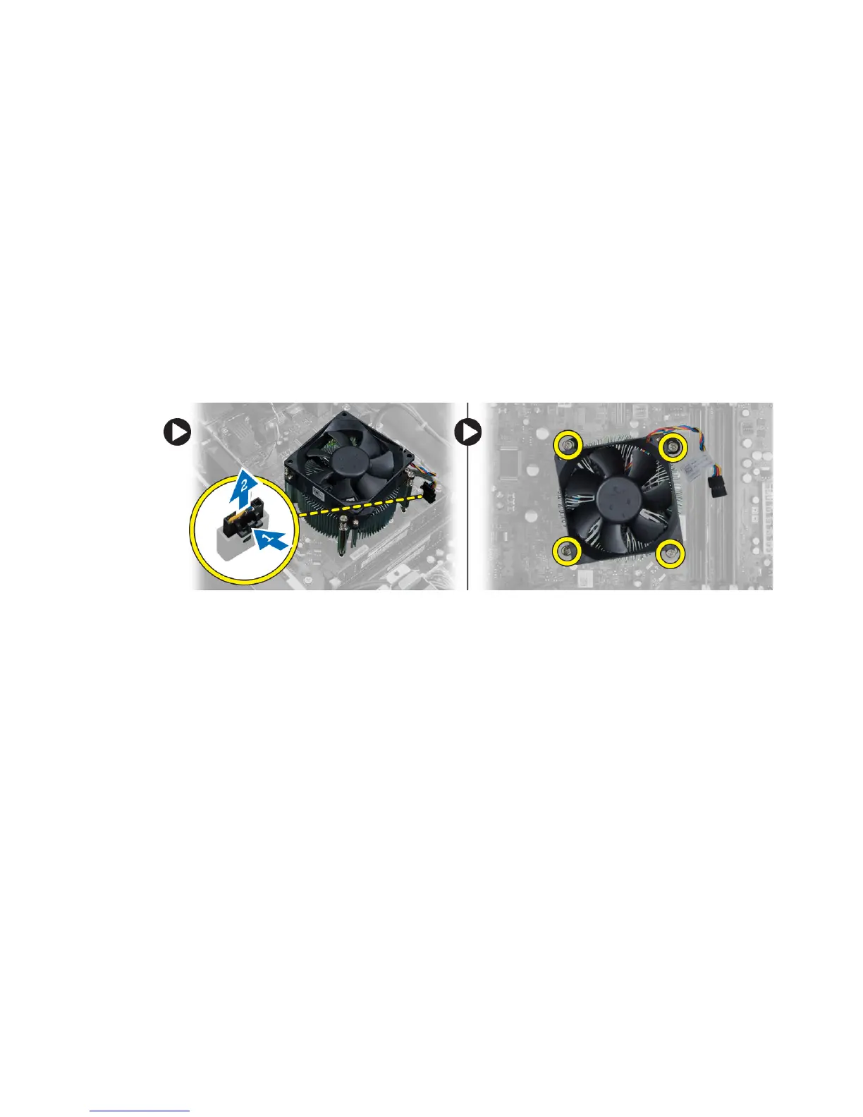 3. Disconnect the fan cable from the system board. Loosen the captive screws in diagonal order and lift the heat-sink