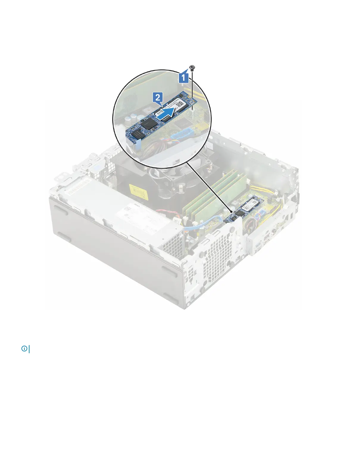 2 Insert the M.2 PCIe SSD to the connector on the system board [2].