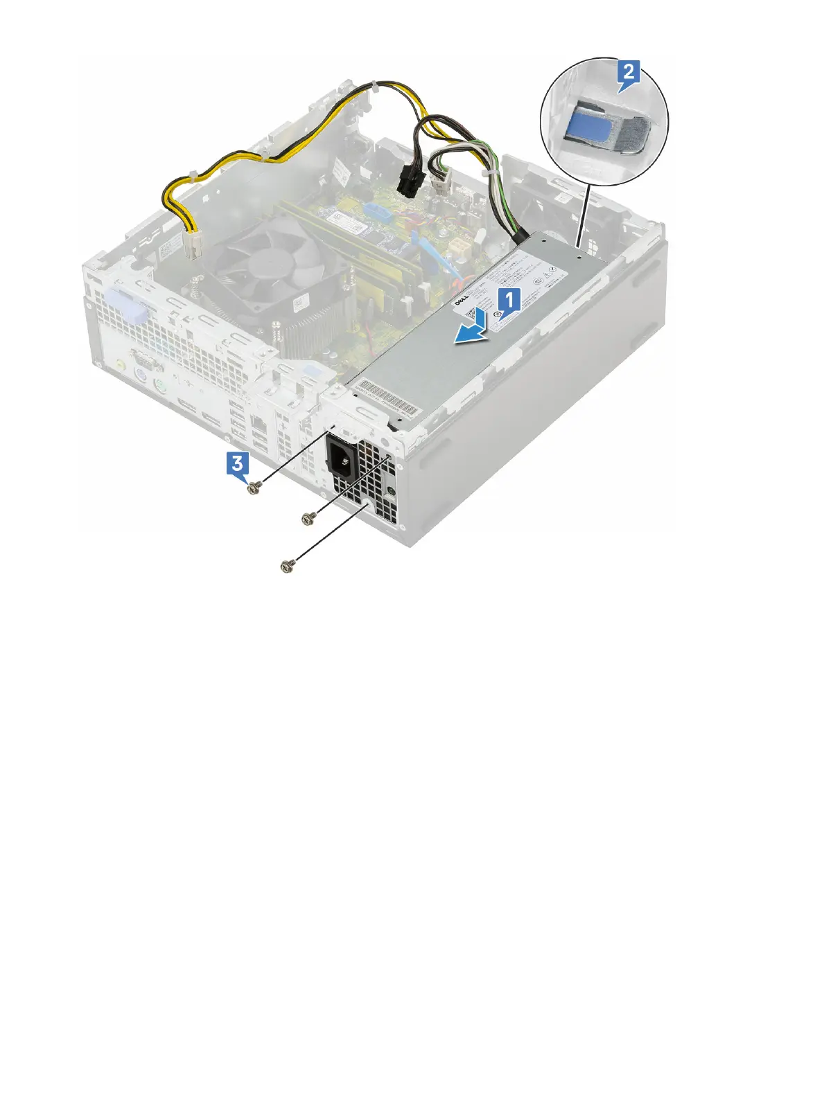 4 Route the CPU power cable through the retention clips [2,3].