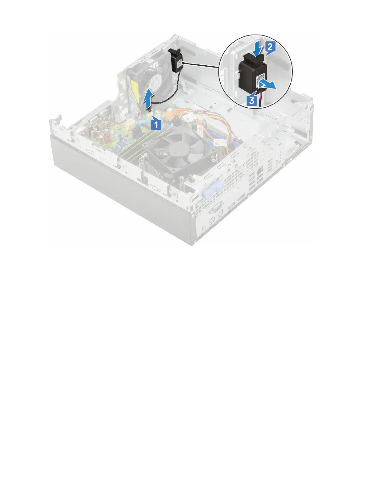 b Press the release tab [2] and pull the speaker out from the system chassis [3].