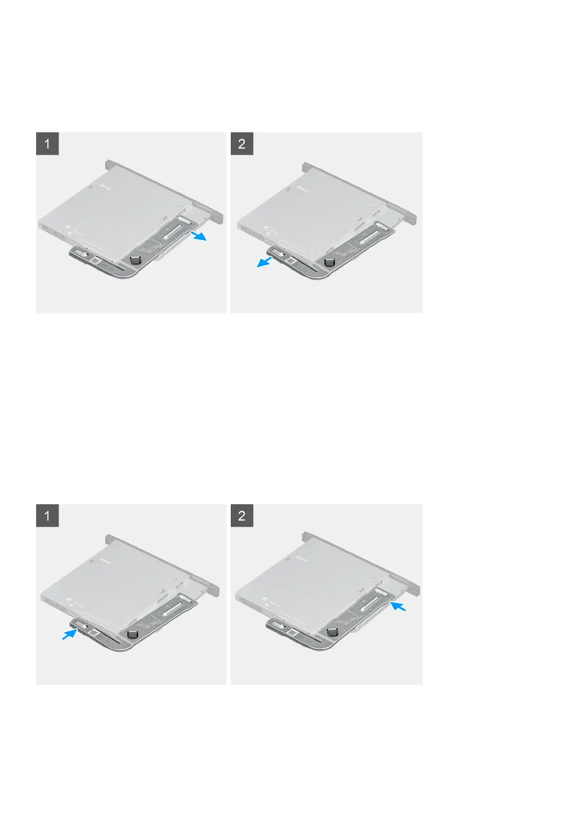 The following images indicate the location of the slim-ODD bracket and provide a visual representation of the removal