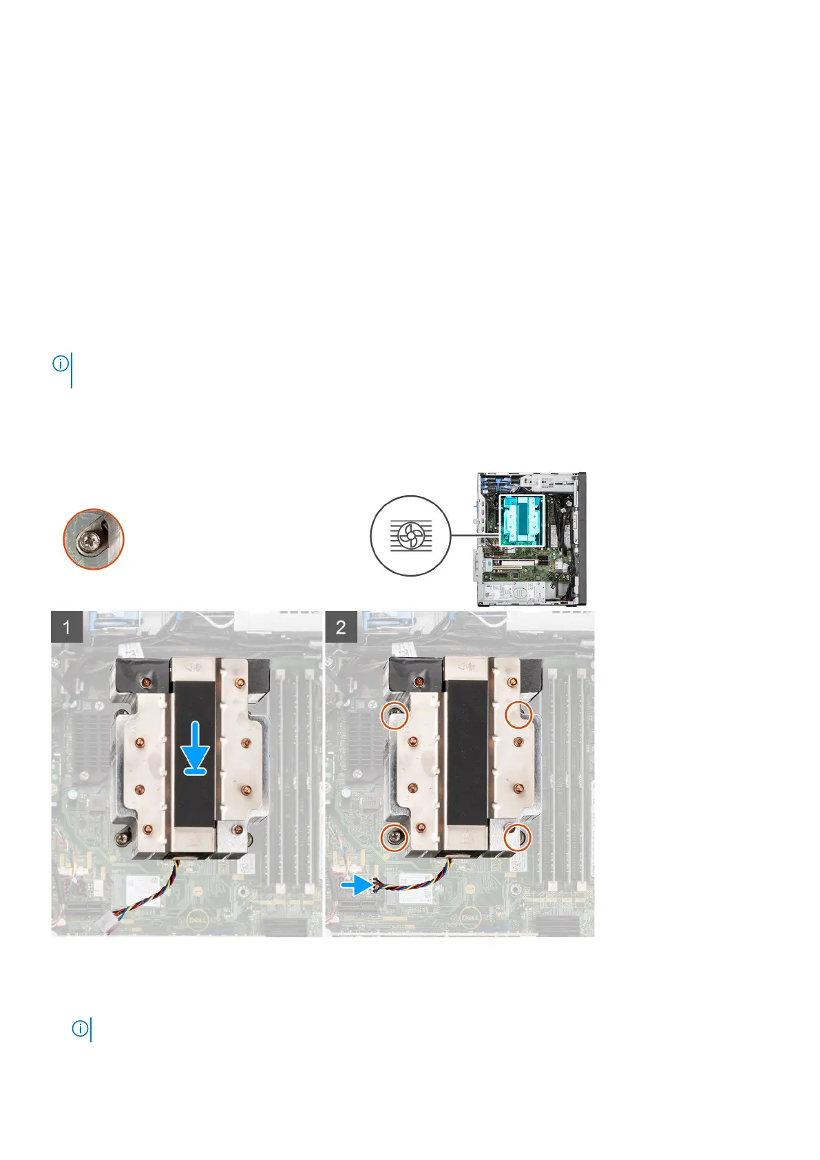 The following image indicates the location of the processor fan and 125 W heat-sink and provides a visual representation of the