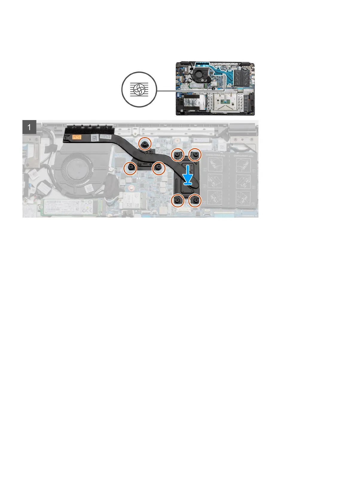 1. Place the heatsink onto the system board ensuring the mounting points on heatsink and system board align.