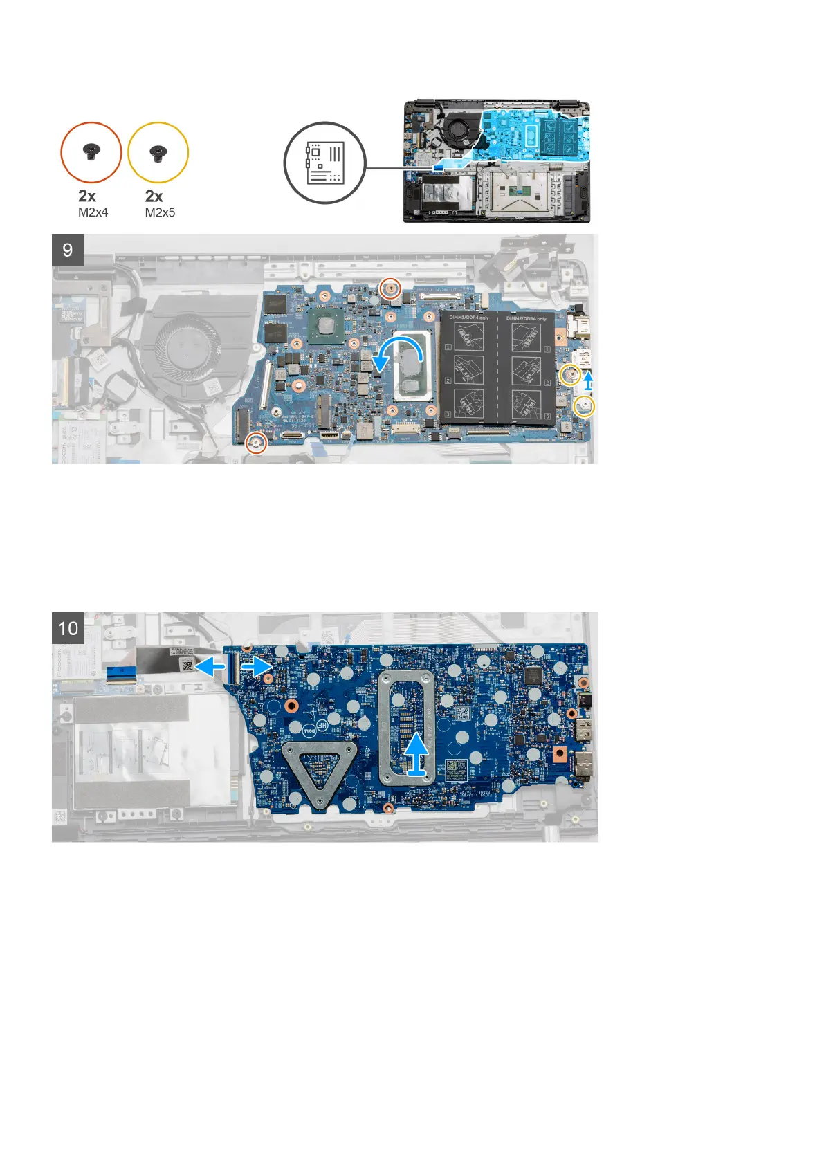 1. Remove the two (M2.5x5) and the single (M2.5x4) screws from the right hinge.