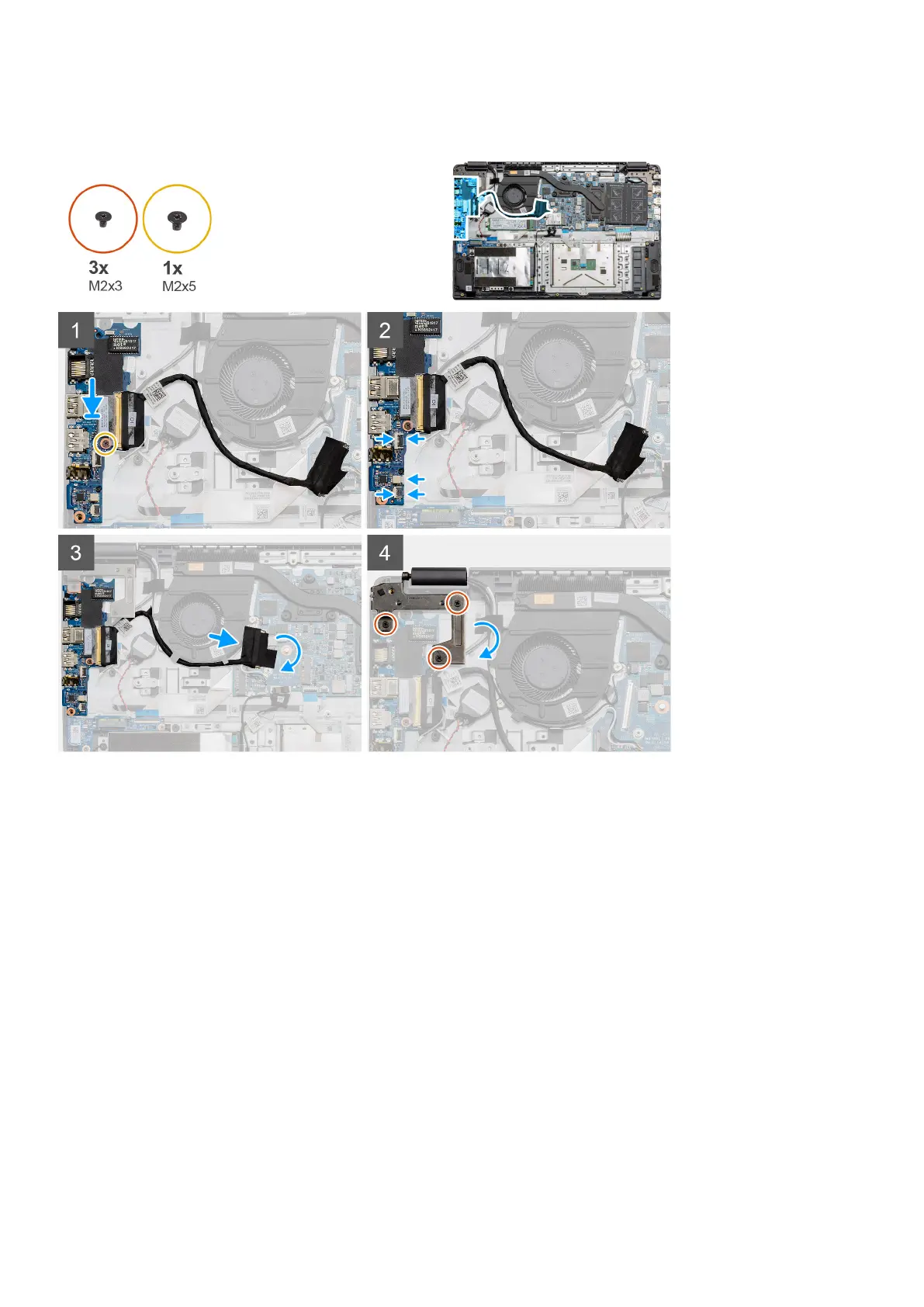 4. Using the three (M2x3) screws, close and secure the left hinge to the palmrest.