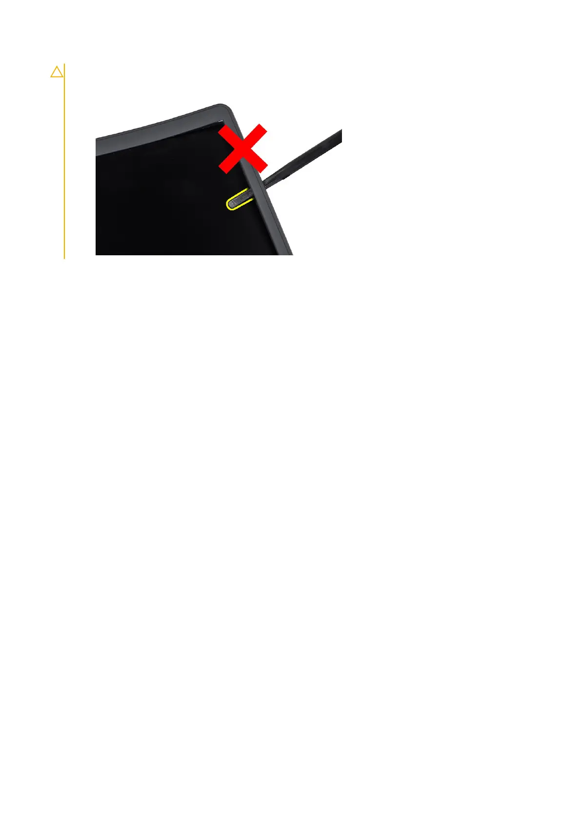 using your hands or plastic scribes. Using a screw driver or other sharp objects may damage the display