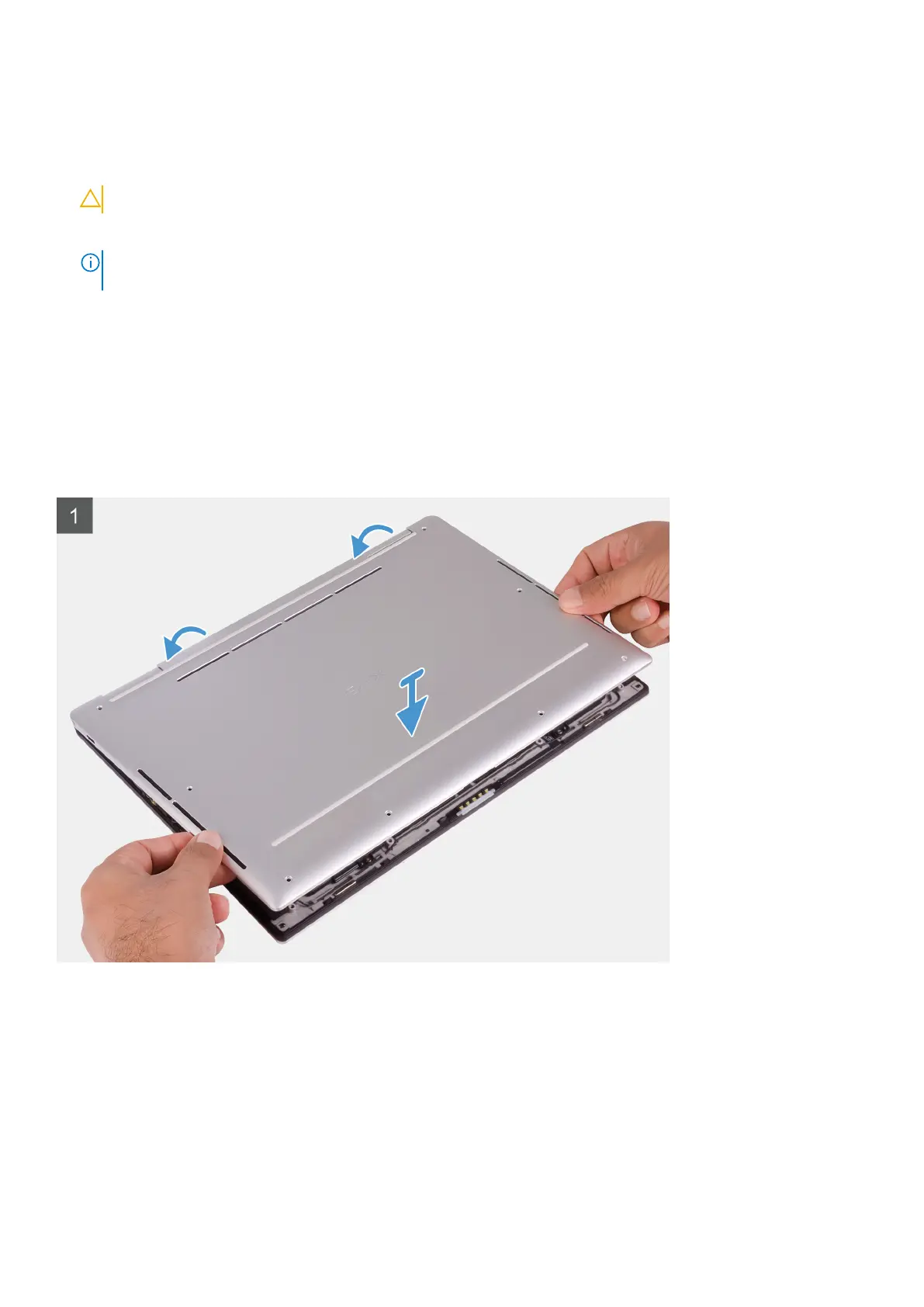2. Starting from the bottom-left corner, pry the base cover in the direction of the arrows to release it from the palm-rest