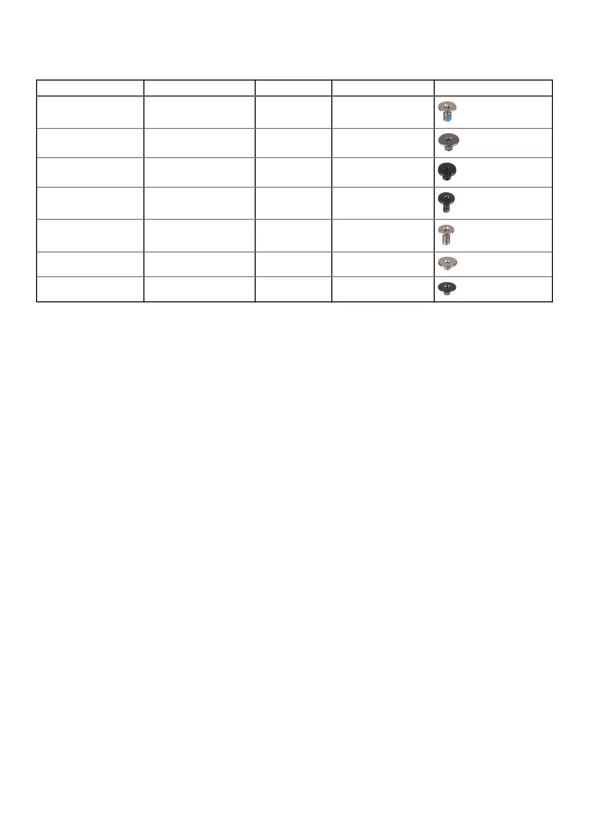 Table 1. Screw list (continued)