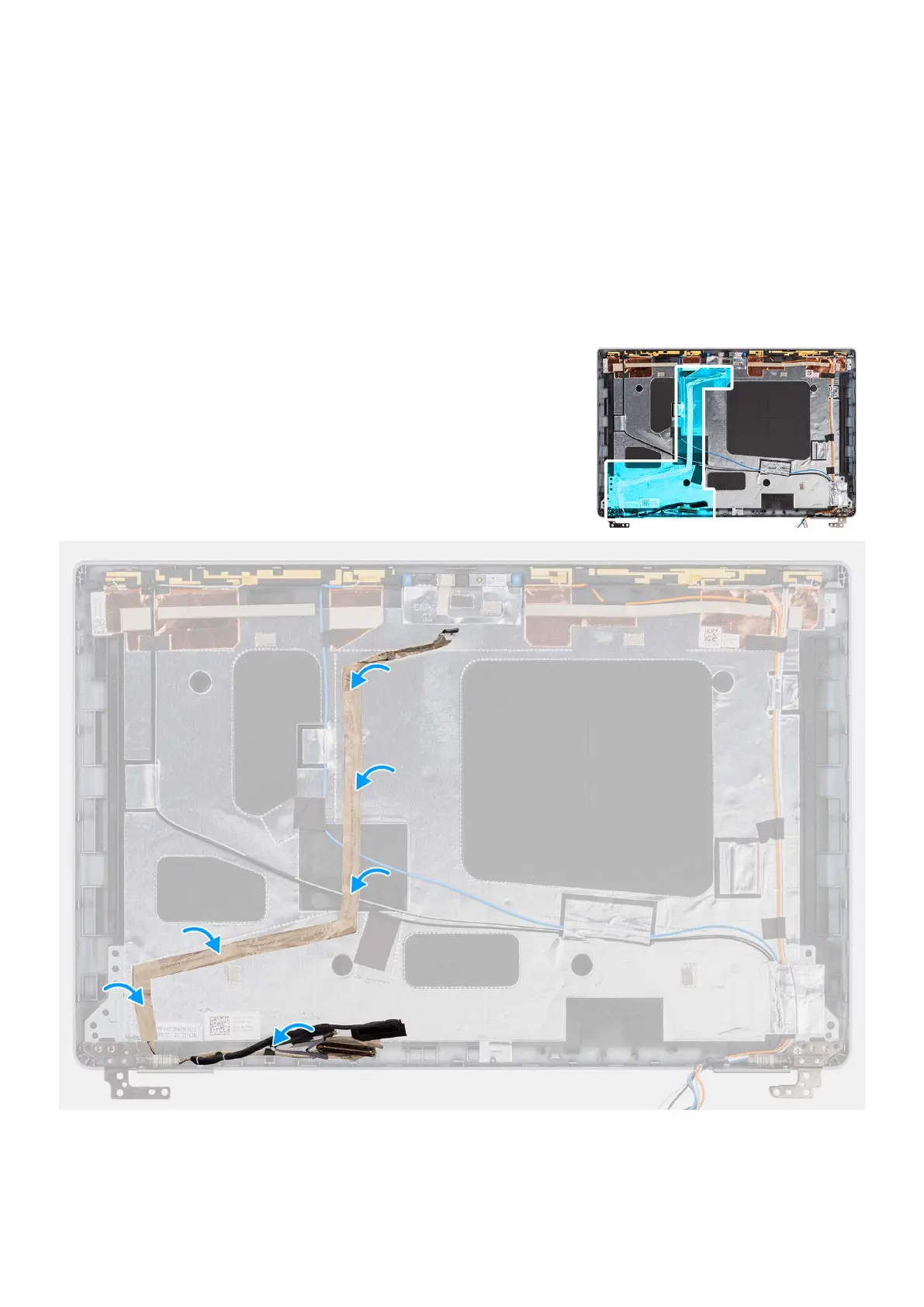 2. Peel the conductive tape and unroute the eDP/display cable to release it from adhesive and lift the eDP/display cable from