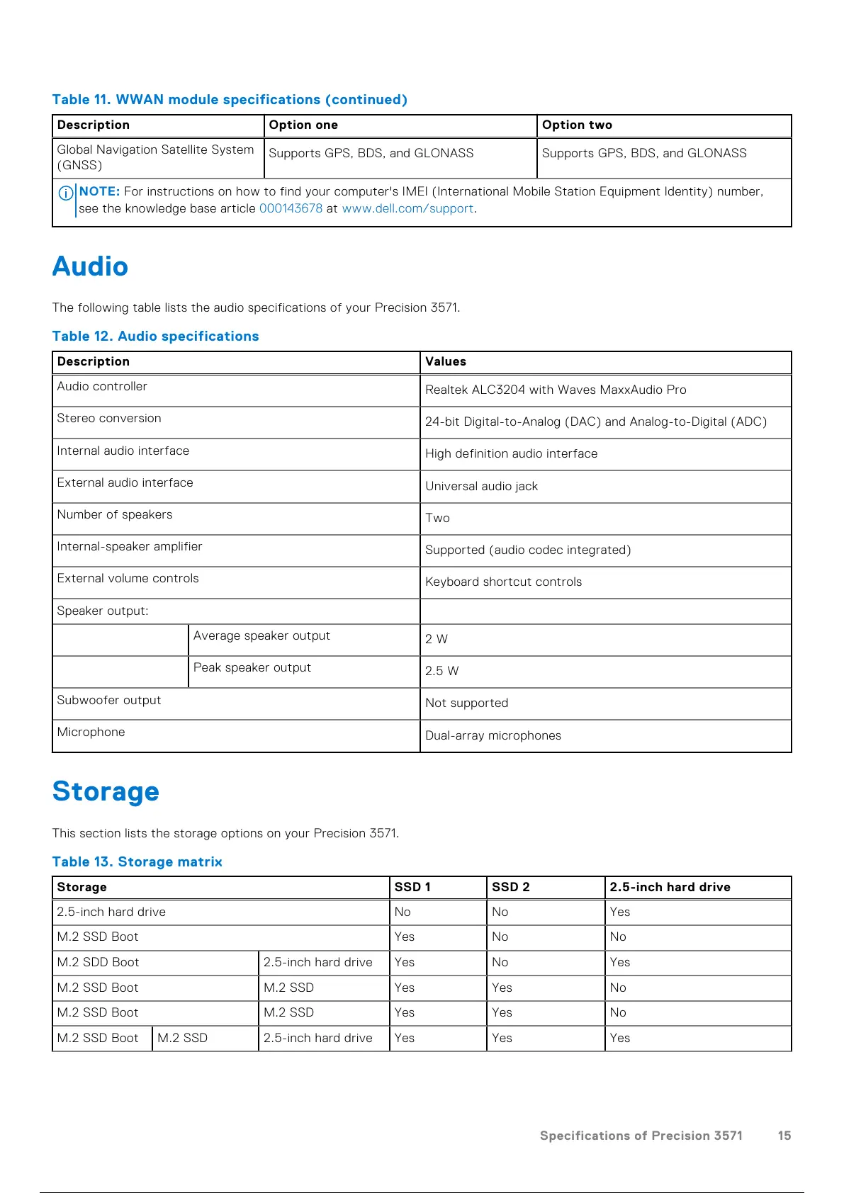 This section lists the storage options on your Precision 3571.
