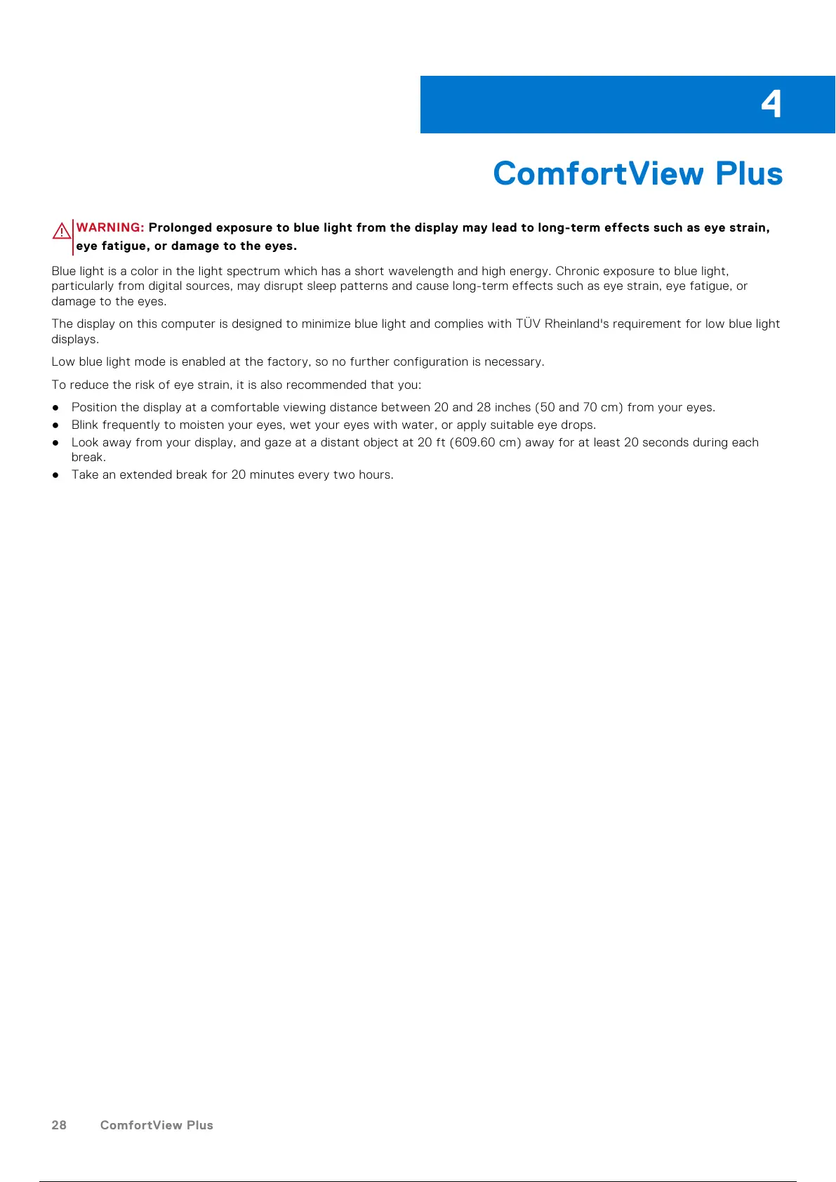 ● Look away from your display, and gaze at a distant object at 20 ft (609.60 cm) away for at least 20 seconds during each