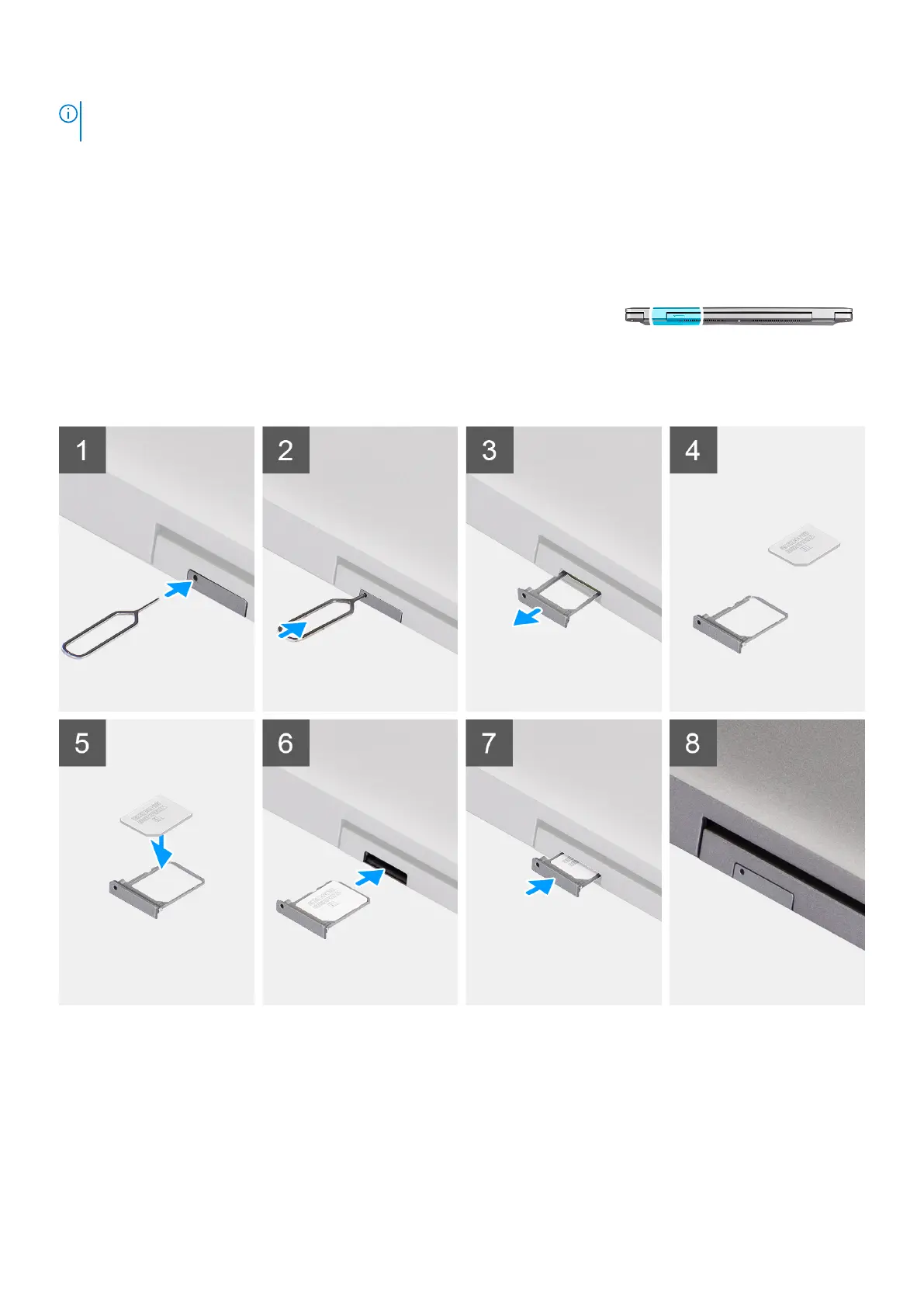 NOTE: SIM card or SIM card tray removal is only available on systems that are shipped with WWAN module. Hence,