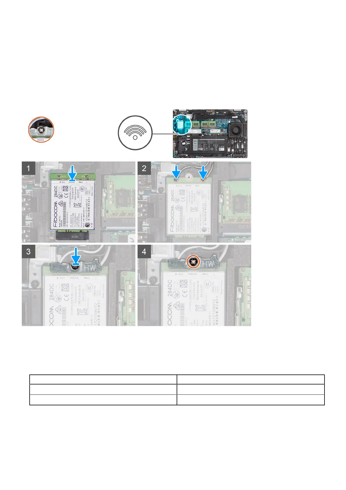 The following image indicates the location of the WWAN card and provides a visual representation of the installation procedure.