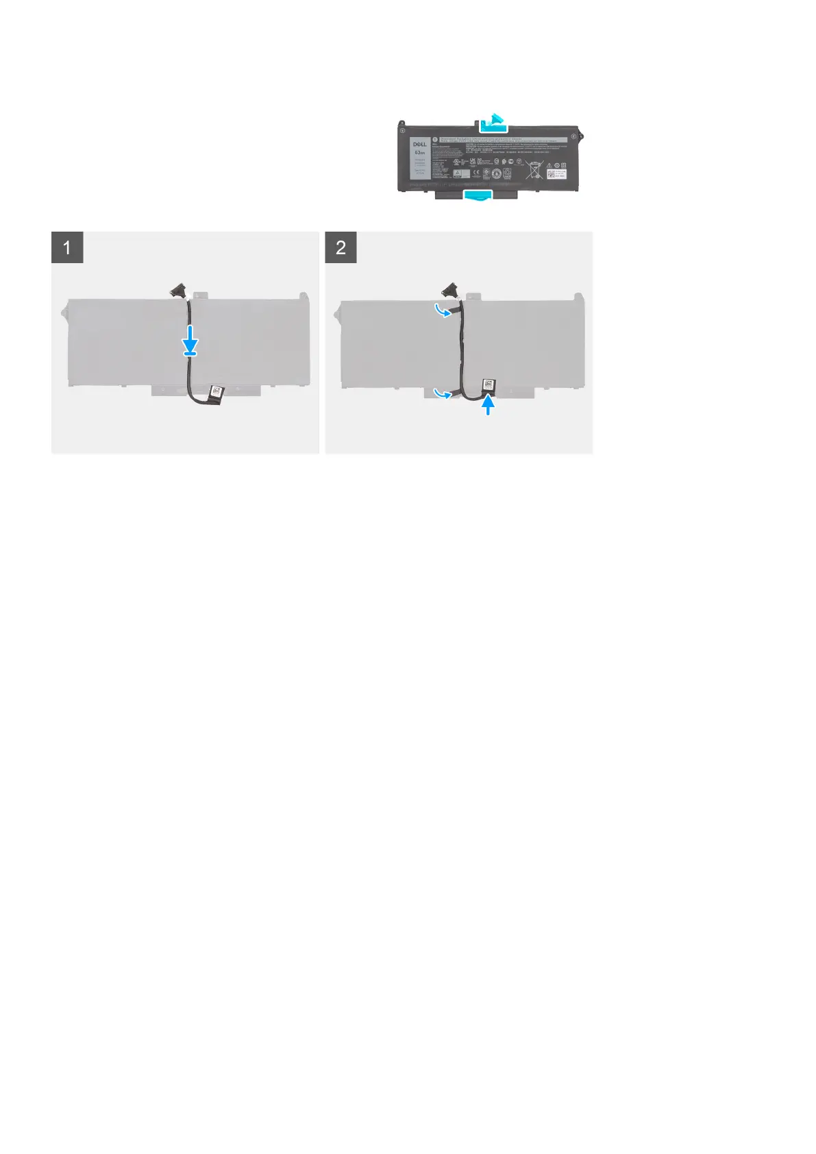 2. Route the battery cable through the routing guides on the battery.