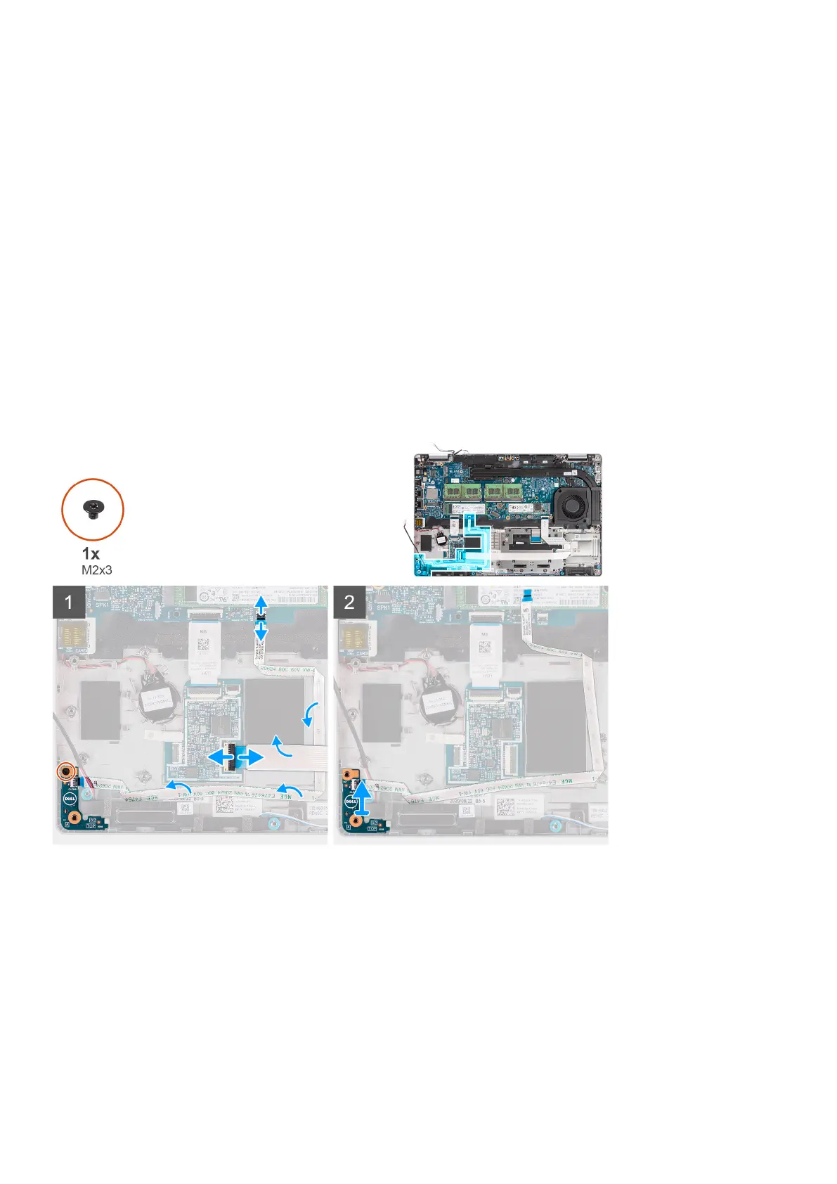4. Remove the single screw (M2x3) that secures the LED board to the palm-rest assembly.