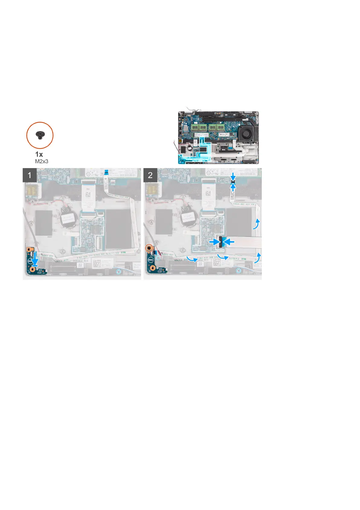 2. Replace the single screw (M2x3) to secure the LED board to the palm-rest assembly.