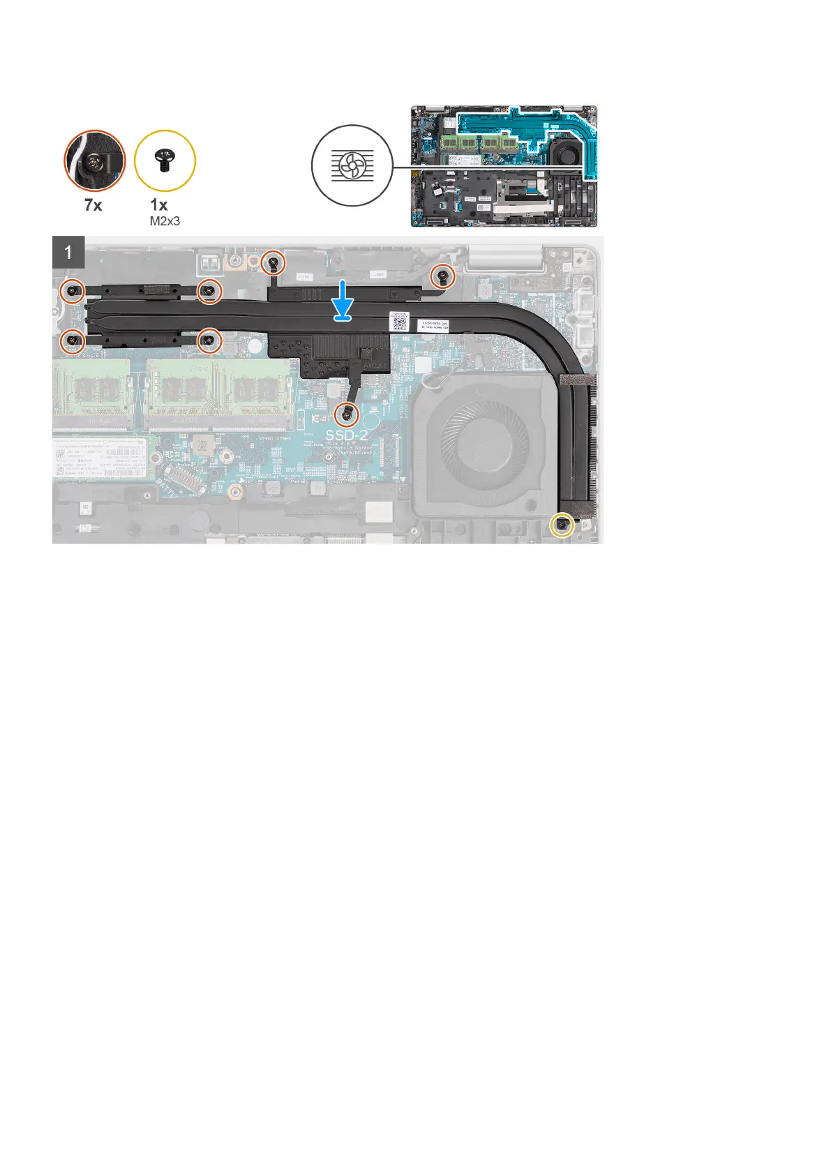 3. Replace the screw (M2x3) that secures the heat sink to the palm-rest assembly.