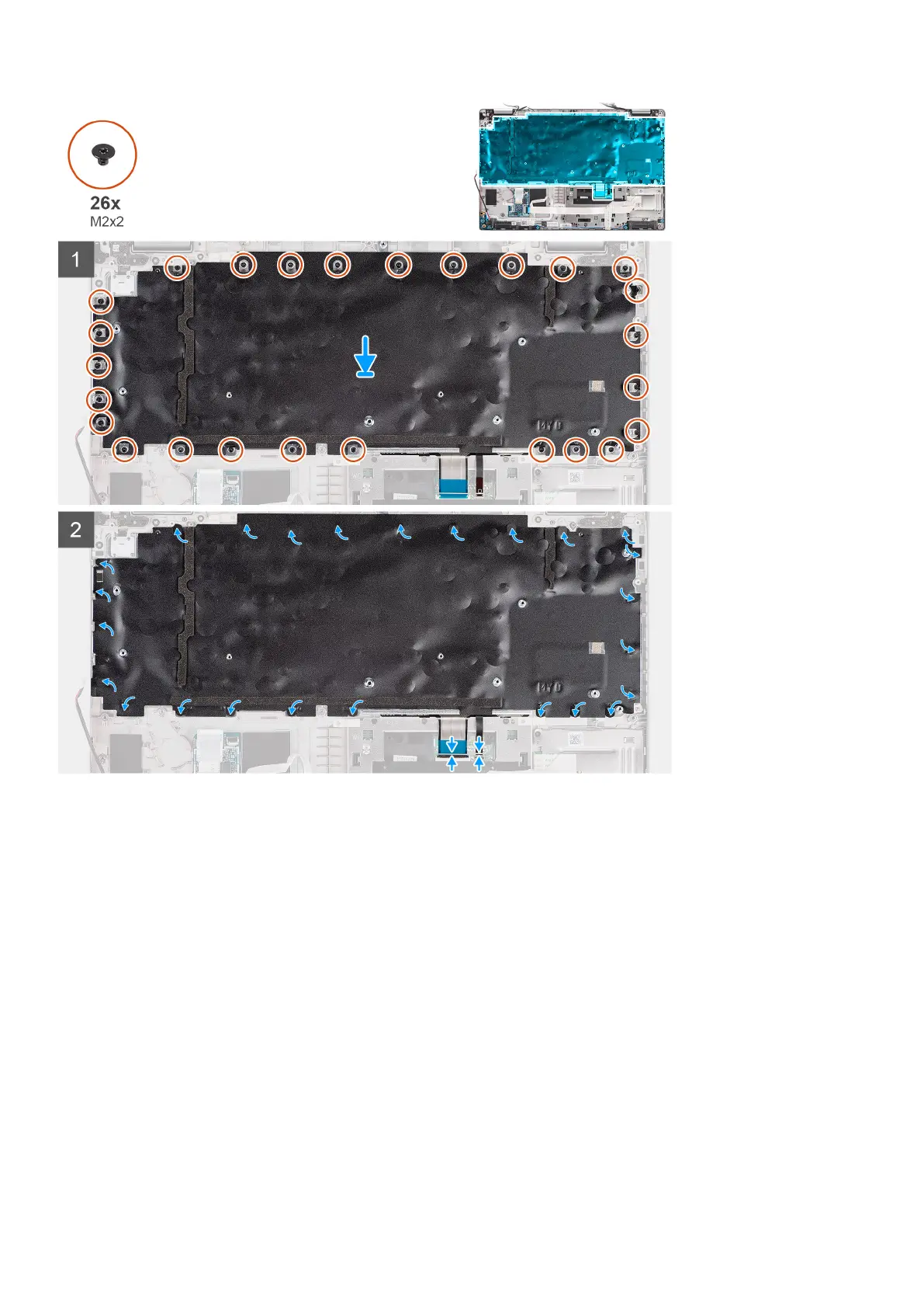 2. Replace the 26 screws (M2x2) that secure the keyboard assembly to the palm-rest assembly.