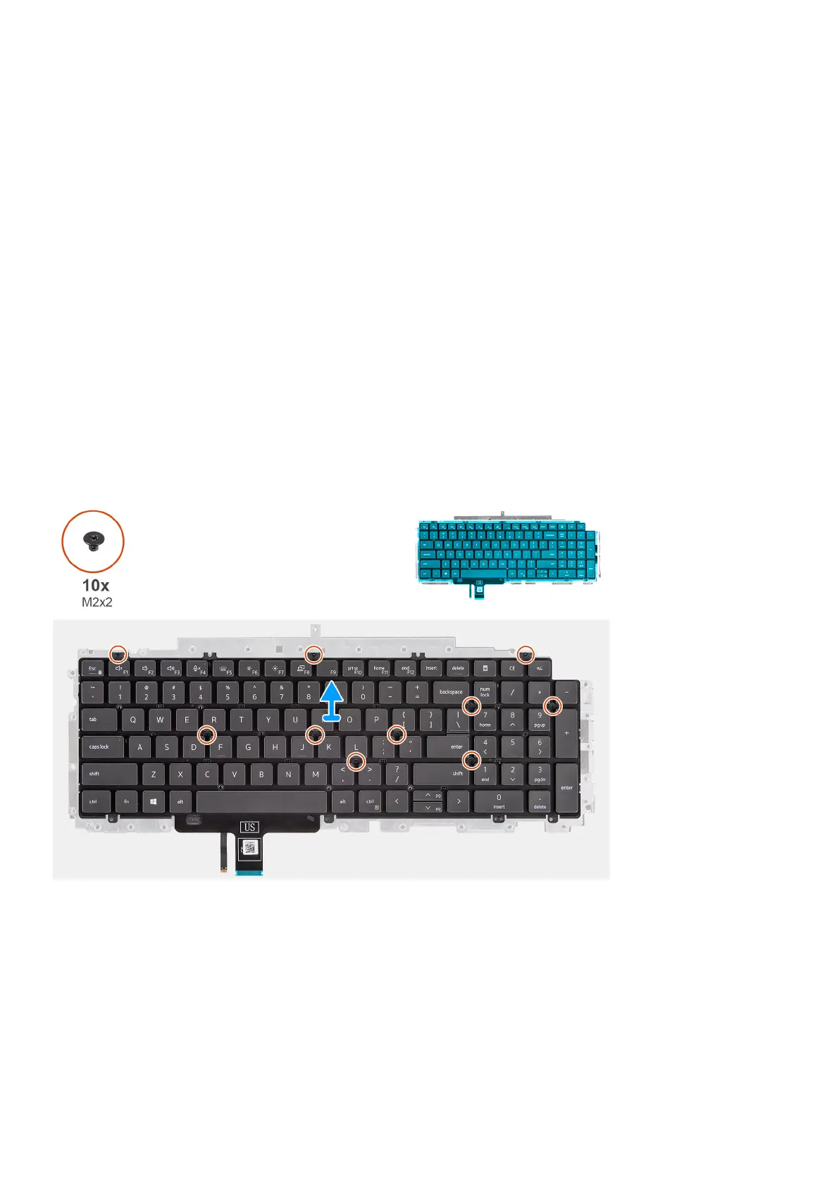 1. Remove the ten screws (M2x2) that secure the keyboard to the keyboard bracket.