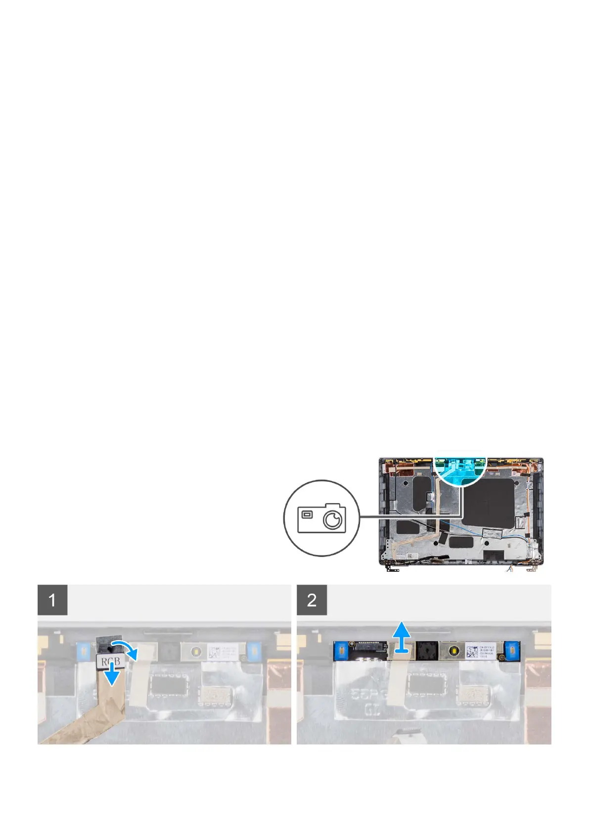 The following images indicate the location of the camera module and provide a visual representation of the removal procedure.