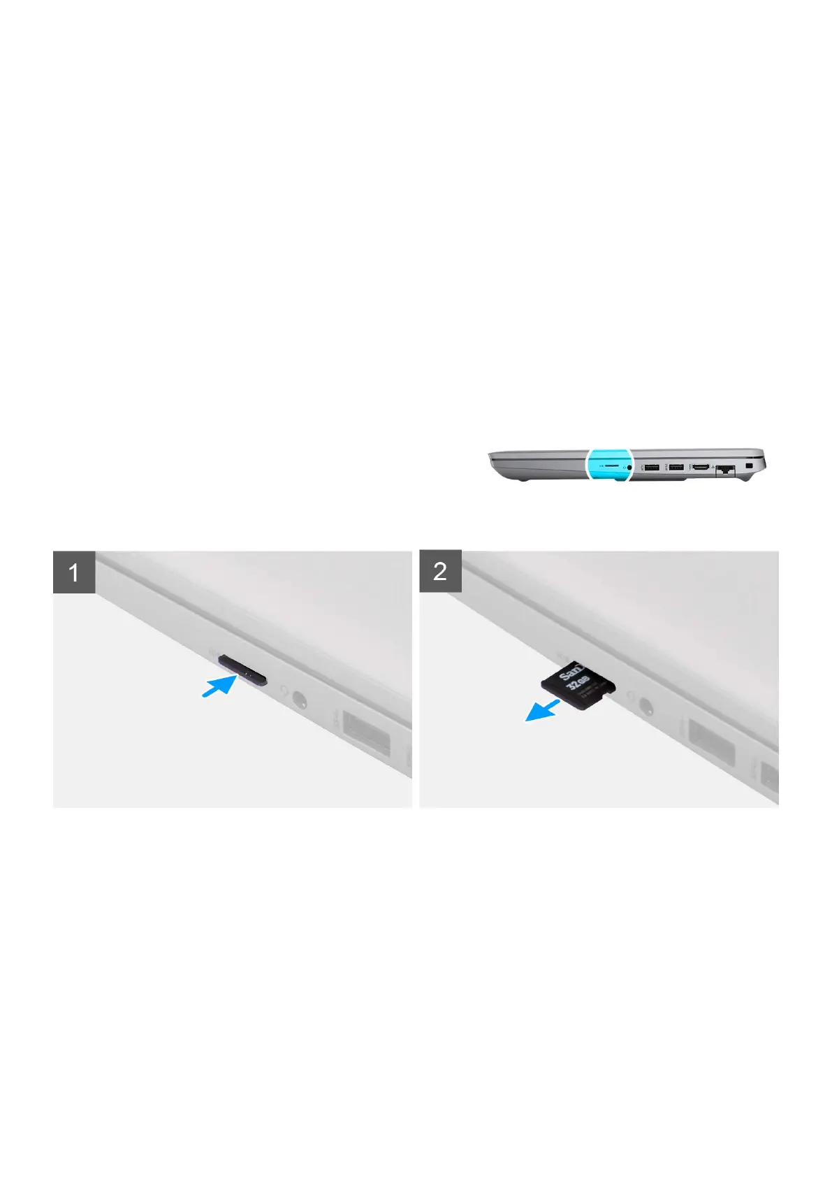 The following images indicate the location of the microSD card and provide a visual representation of the removal procedure.