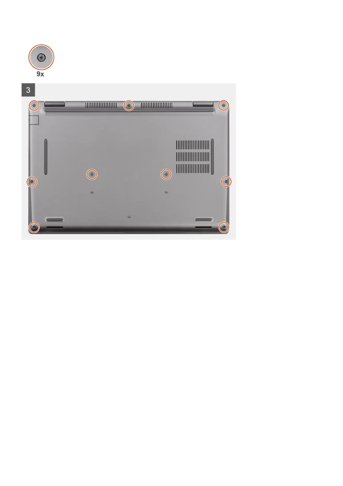 4. Tighten the nine captive screws that secure the base cover to the palm-rest and keyboard assembly.