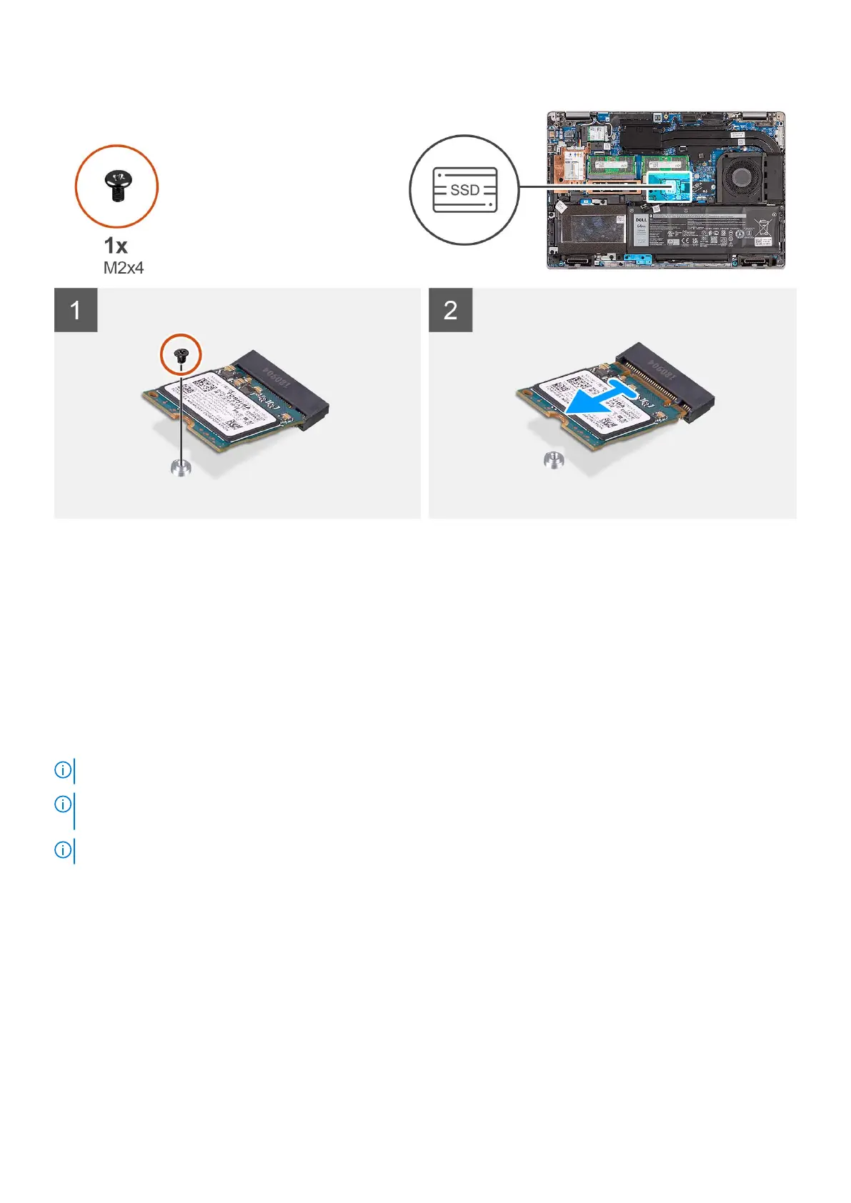 The following images indicate the location of the 2230 solid-state drive that is installed in M.2 slot and provides a visual