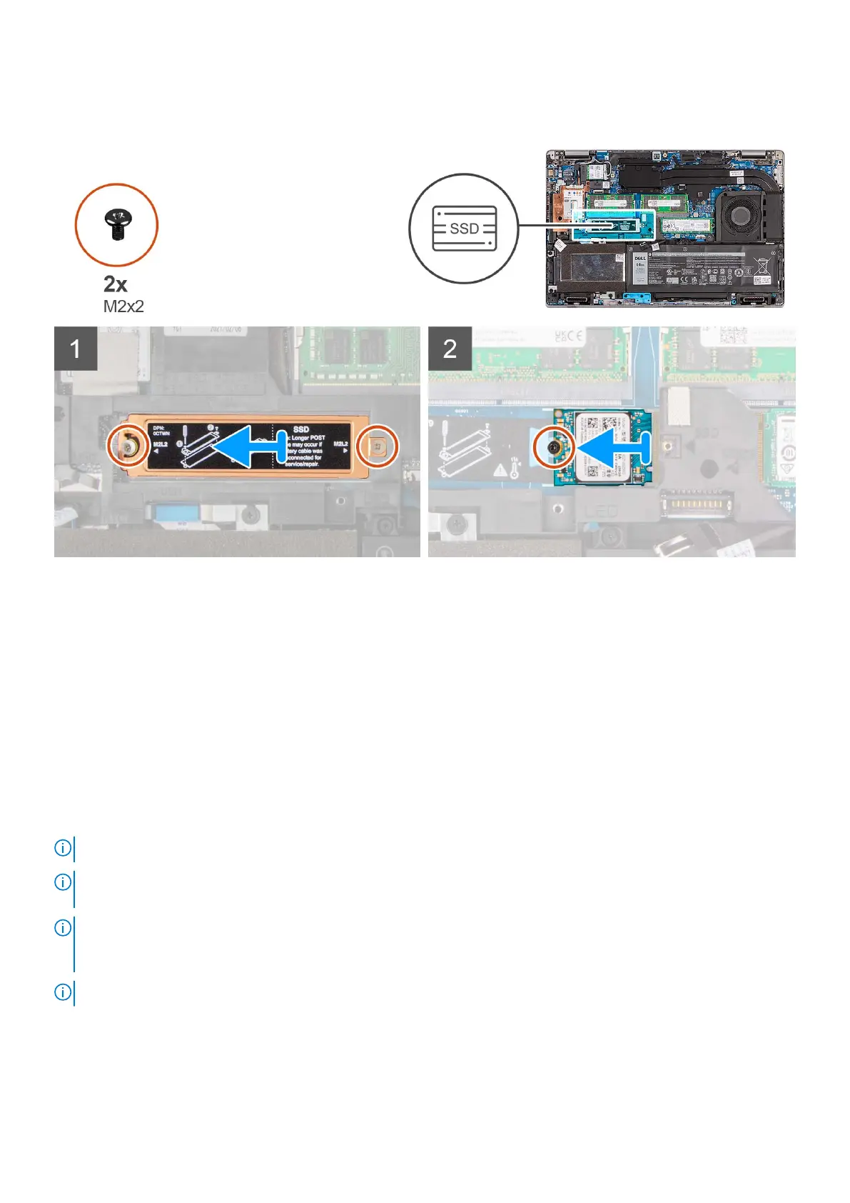NOTE: This procedure applies only if you are installing a 2230 solid-state drive in M.2 slot. When you install the M.2 2230