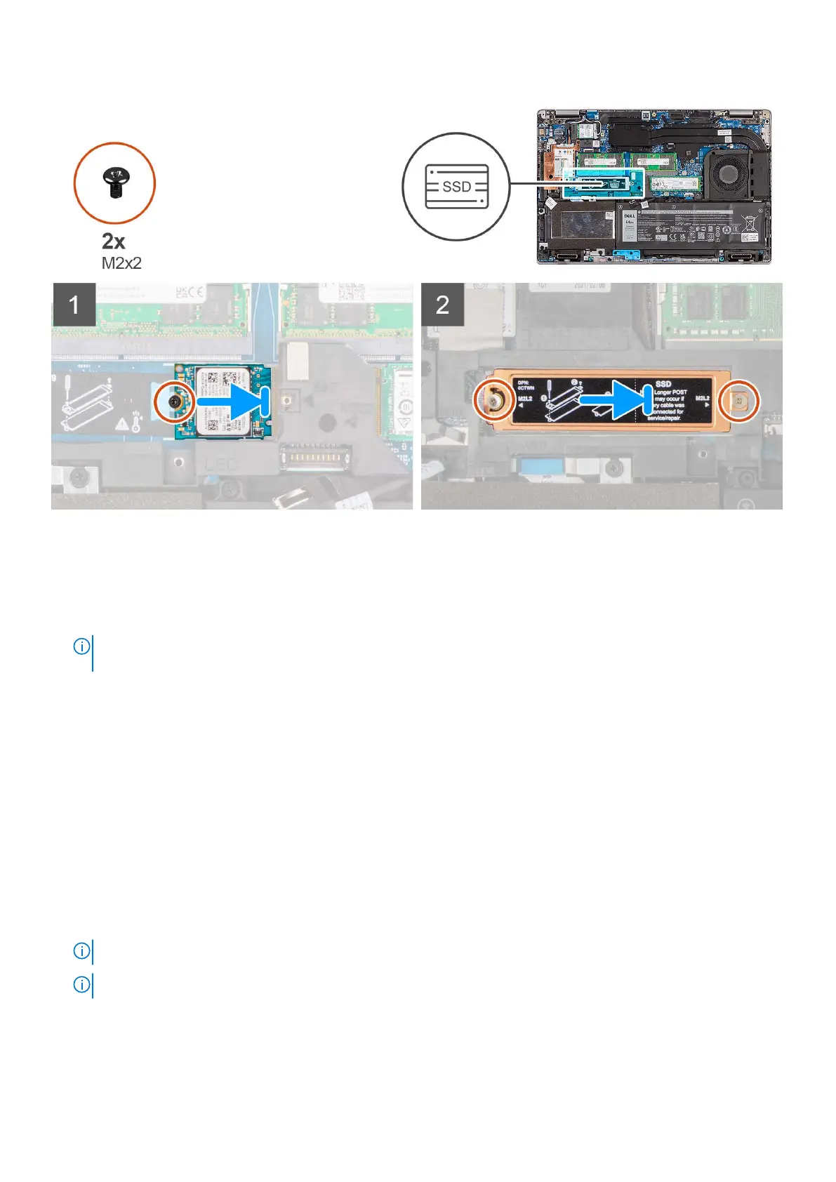 6. Replace the two screws (M2x2) that secure the solid-state drive thermal plate to the palm-rest and keyboard assembly.