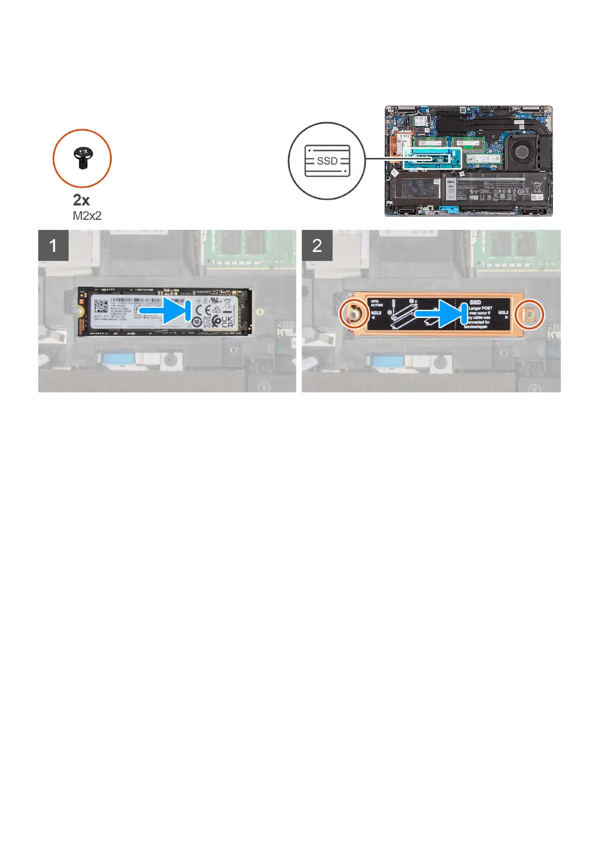 The following images indicate the location of the 2280 solid-state drive that is installed in M.2 slot and provides a visual