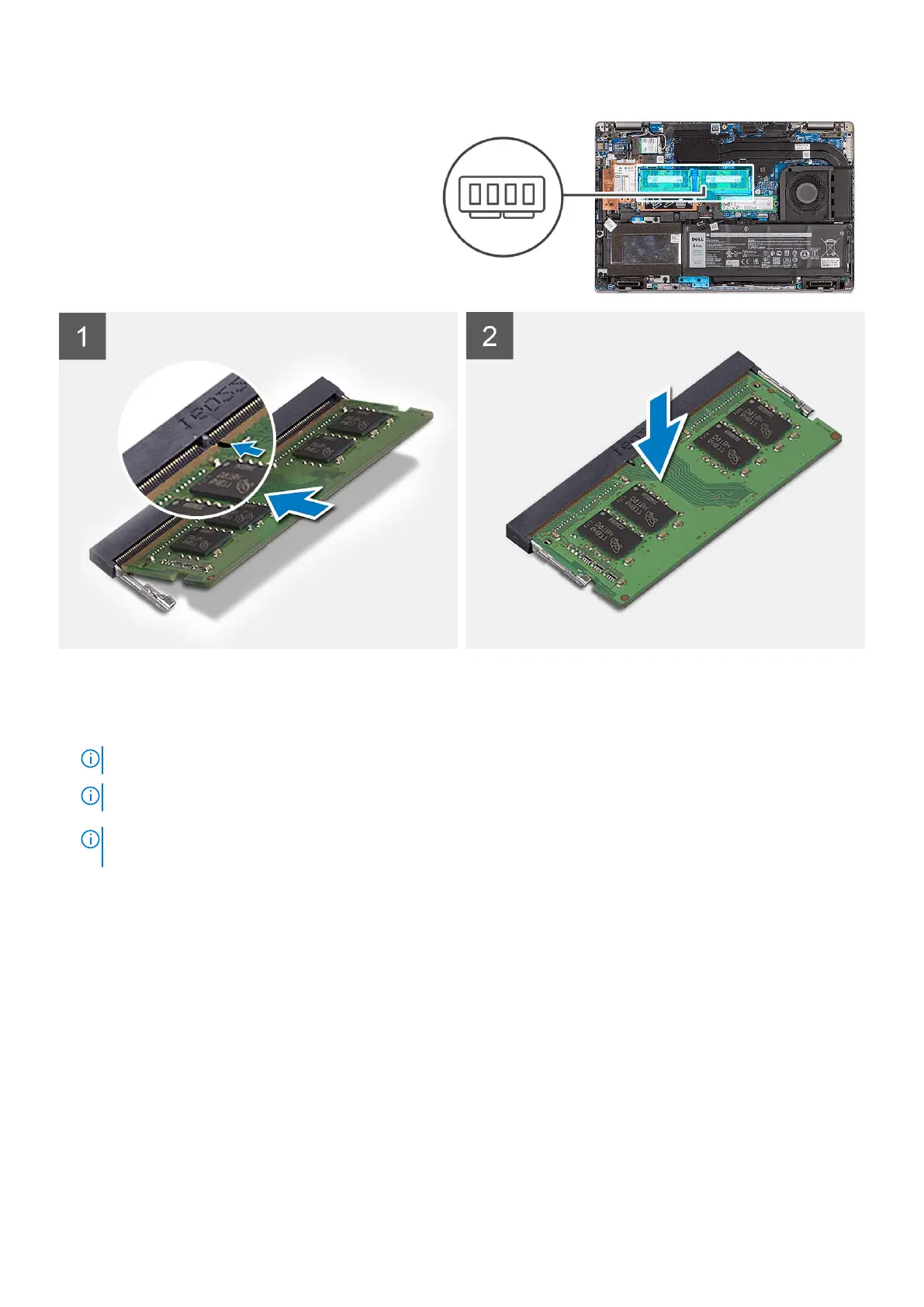 2. . Slide the memory module firmly into the slot at an angle and press the memory module down until it clicks into place.