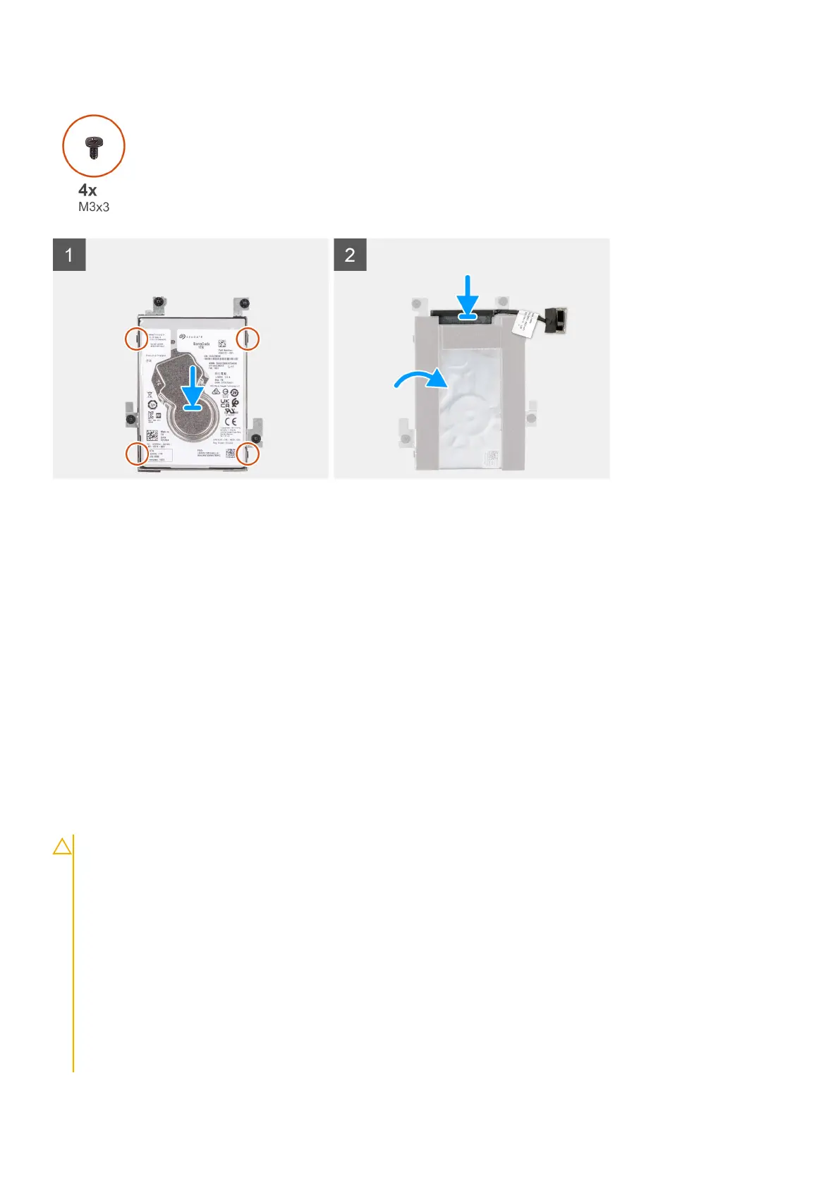 2. Replace the four screws (M3x3) to secure the hard drive to the hard-drive bracket.