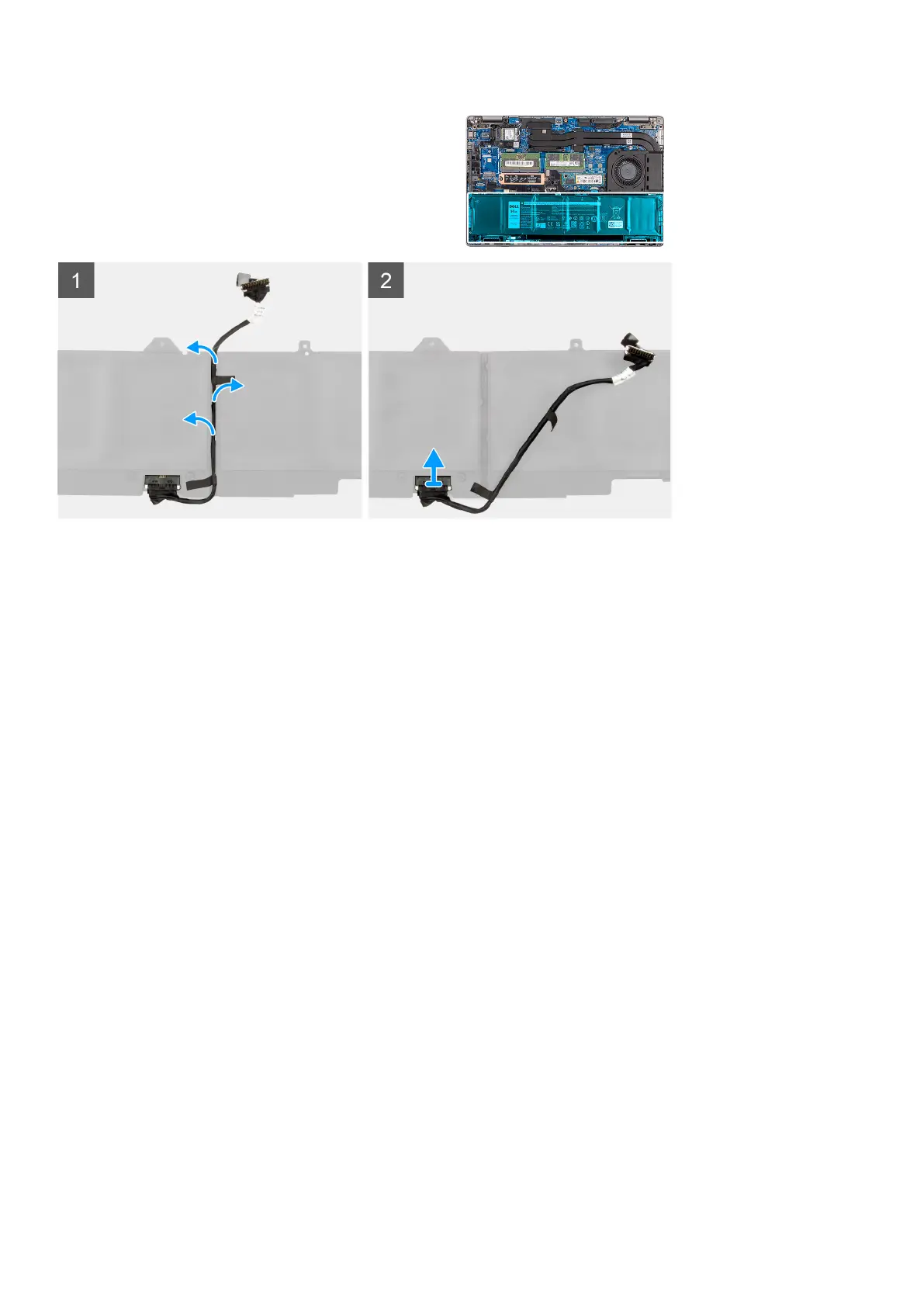 1. Flip the battery and unroute the battery cable from the routing guides on the battery.