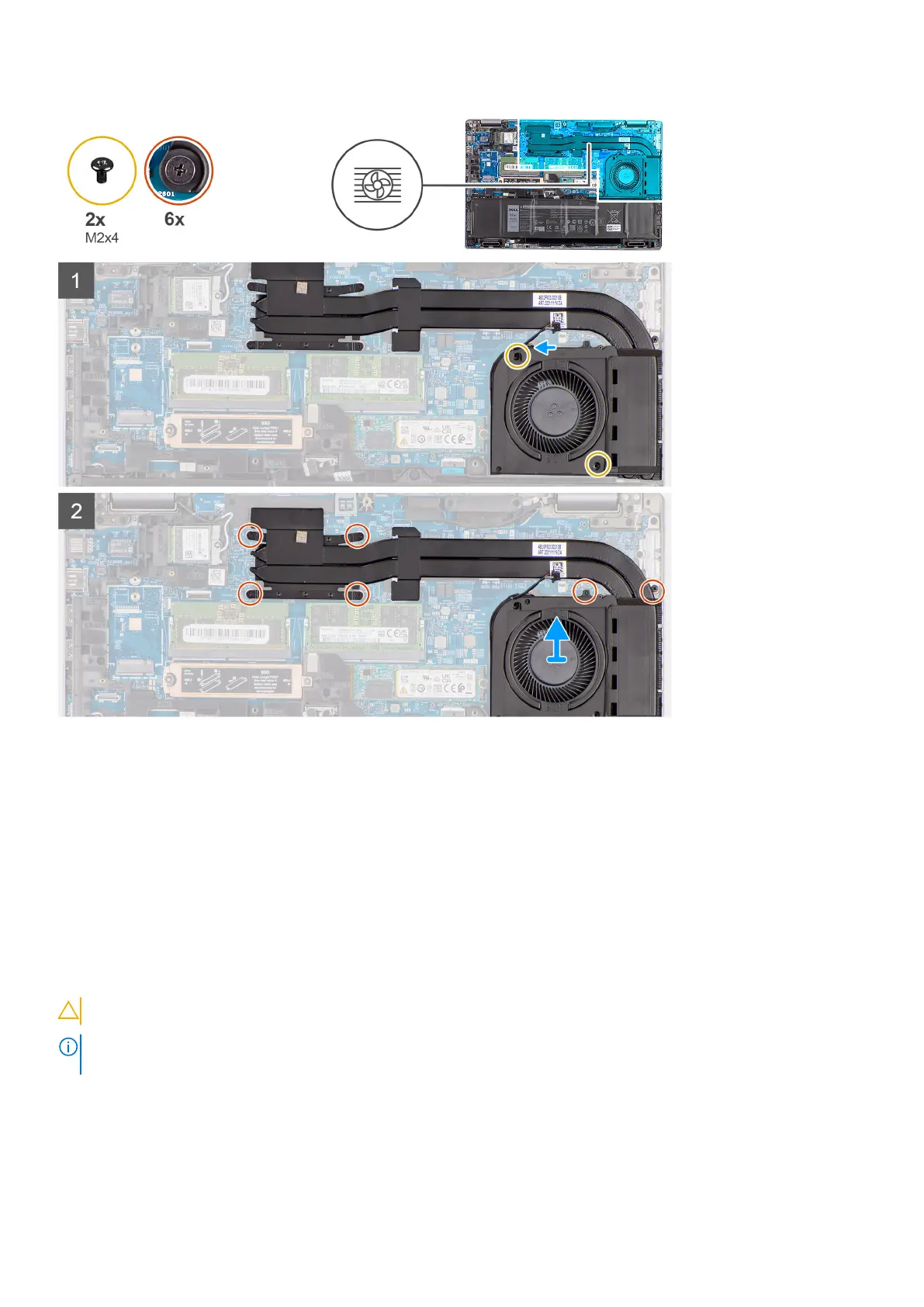 The following images indicate the location of the heat sink and fan assembly and provide a visual representation of the