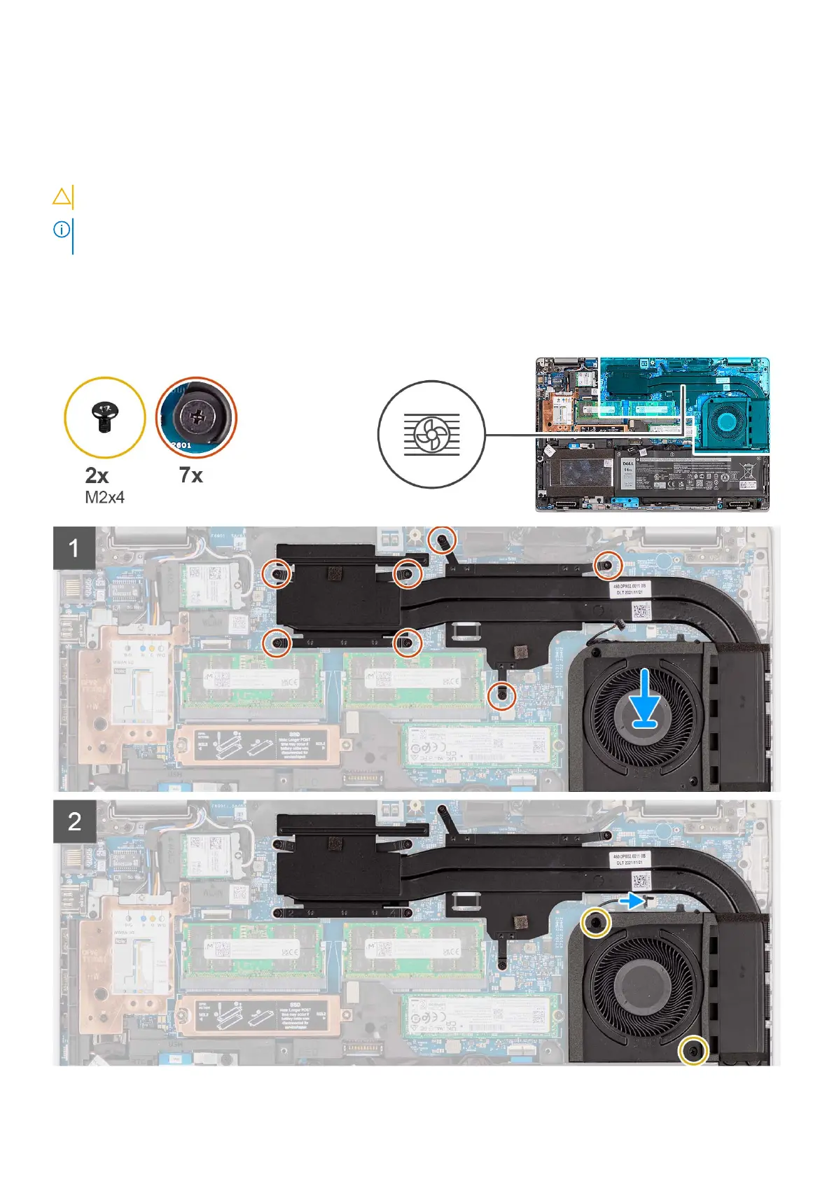 The following images indicate the location of the heat sink and fan assembly and provide a visual representation of the