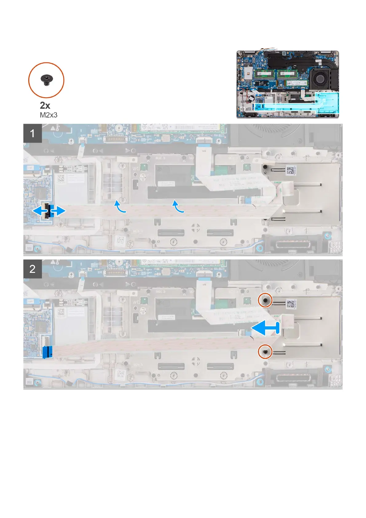 3. Remove the two screws (M2x3) that secure the smart card reader to the palm-rest and keyboard assembly.