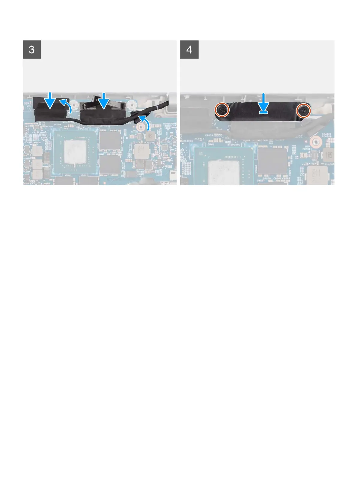 11. Replace the two screws (M2x3) that secure the eDP cable bracket to the system board.