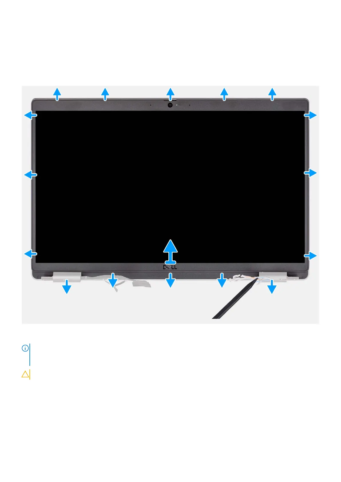 CAUTION: Carefully pry and remove the display bezel to minimize the risk of display panel damages.