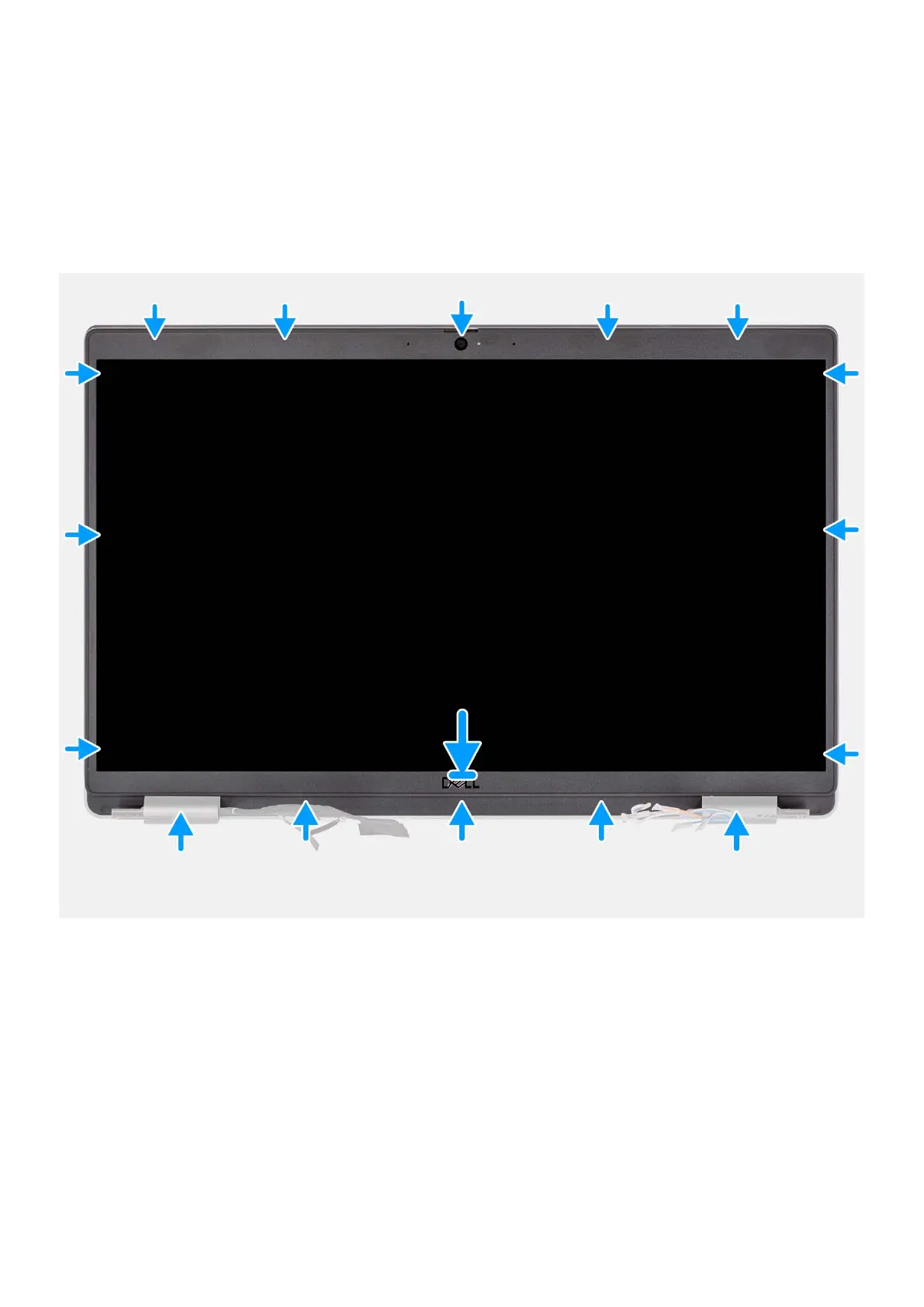 The following image indicates the location of the display bezel and provides a visual representation of the installation procedure.