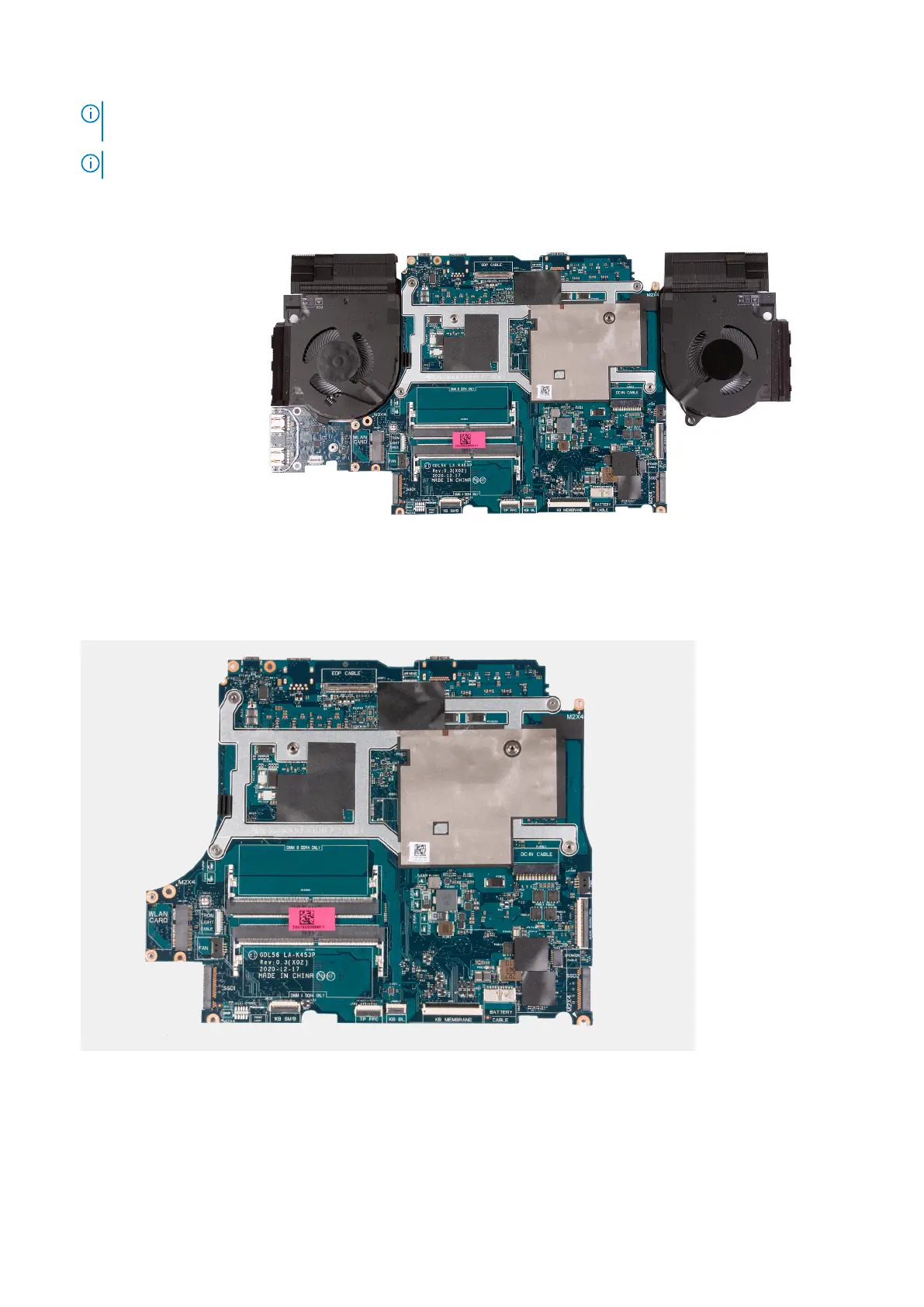 NOTE: After removing the screws, lift the system board from the top left and right sides of the heat sink. Ensure the