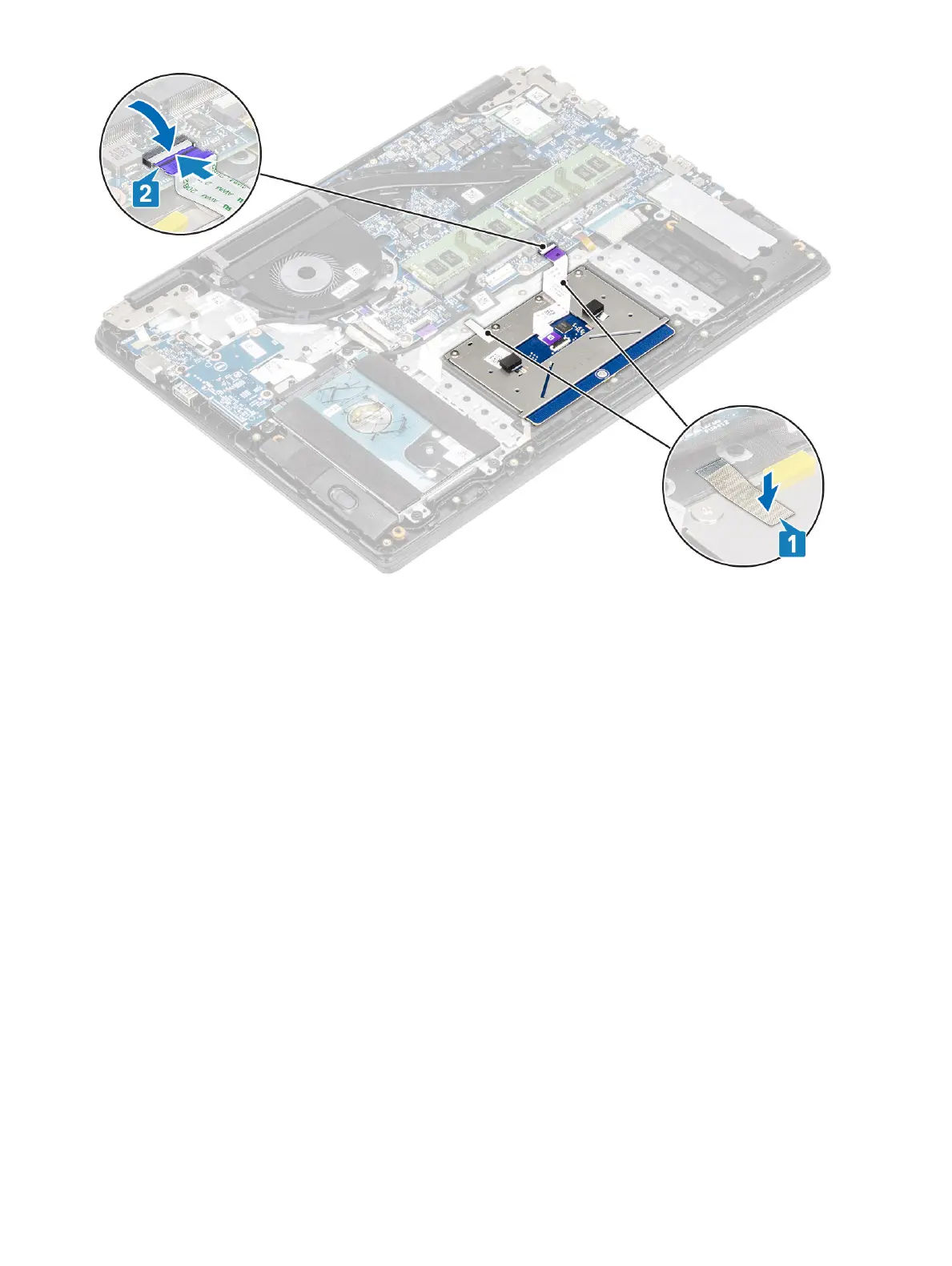 5 Place the touch pad bracket into the slot on the palmrest and keyboard assembly [1].