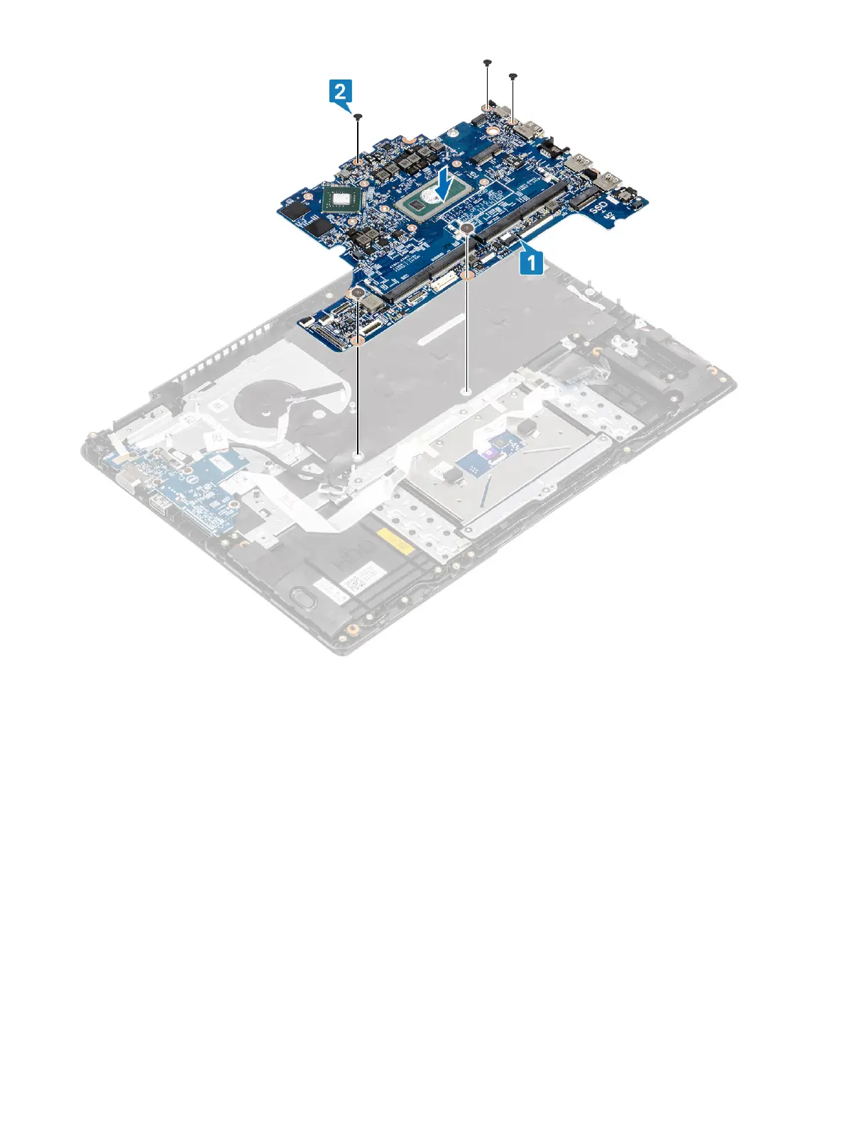 3 Connect the following cables to the system board: