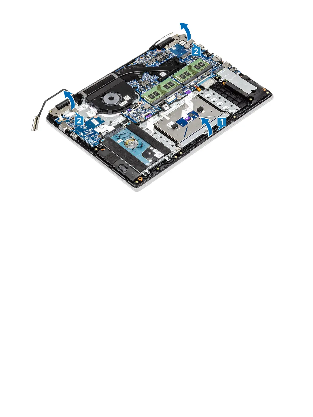 7 Slide and remove the palmrest and keyboard assembly o the display assembly.