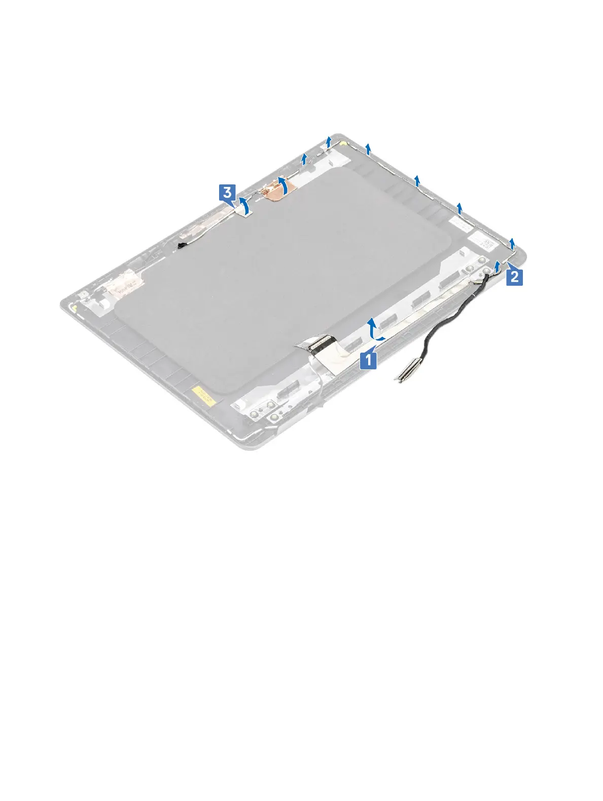 1 Remove the camera cable and the display cable from the routing guides on the display back-cover [1,2].