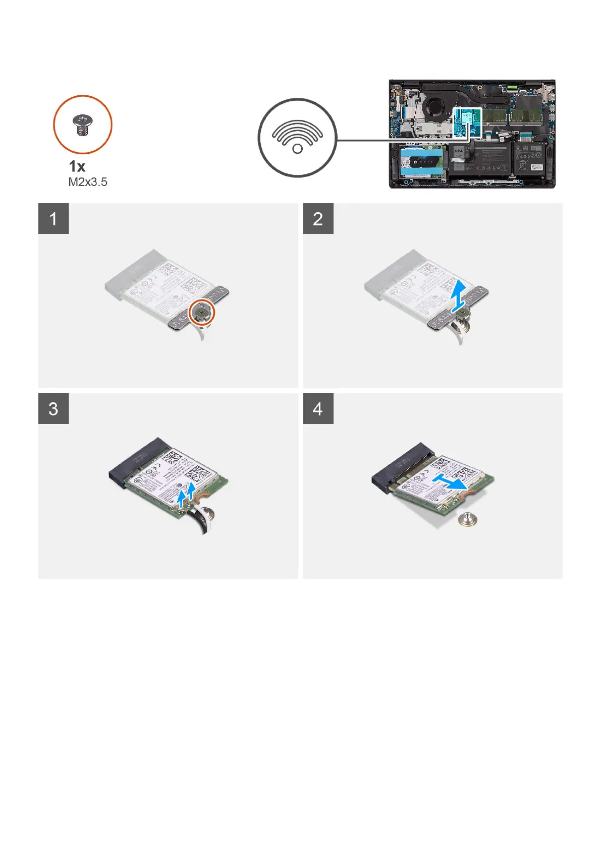 1. Remove the screw (M2x3.5) that secures the wireless-card bracket to the system board.